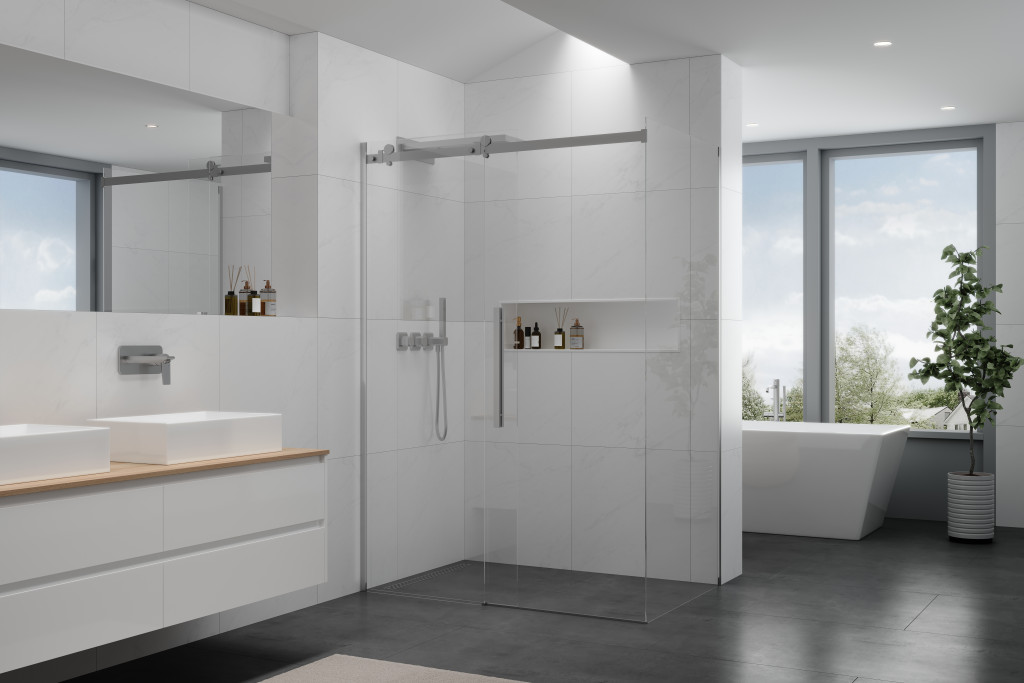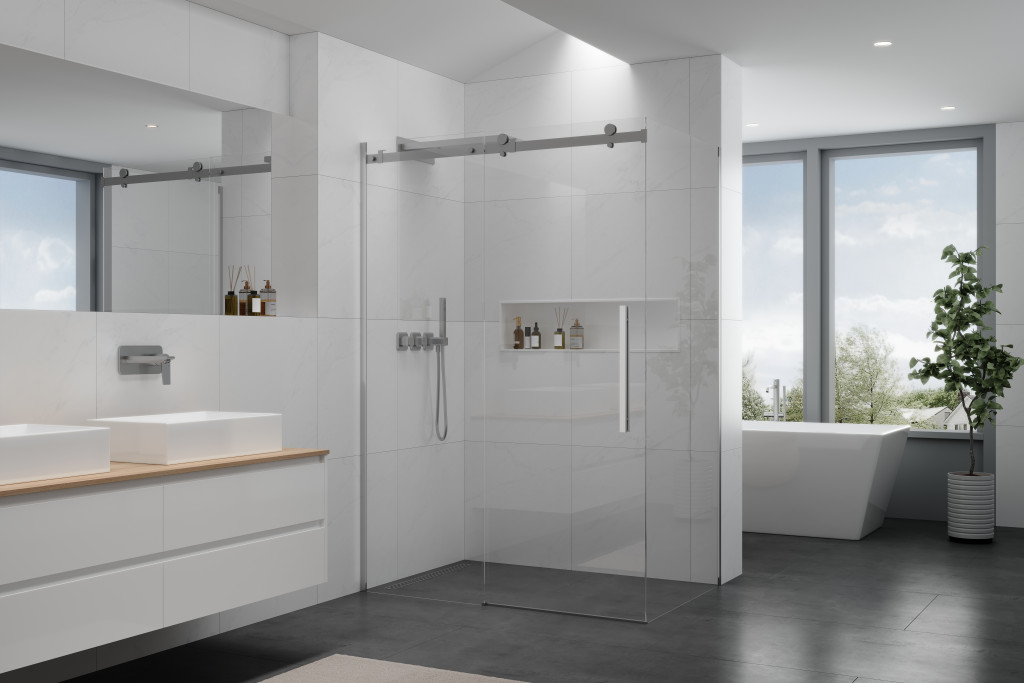Az exkluzív (polírozott) alumínium görgős rendszer által biztosított tolóajtós rendszernek köszönhetően a zuhanyajtó könnyedén nyitható, aminek segítségével könnyedén léphetünk be a zuhanytérbe és ki a zuhanyzás végeztével.