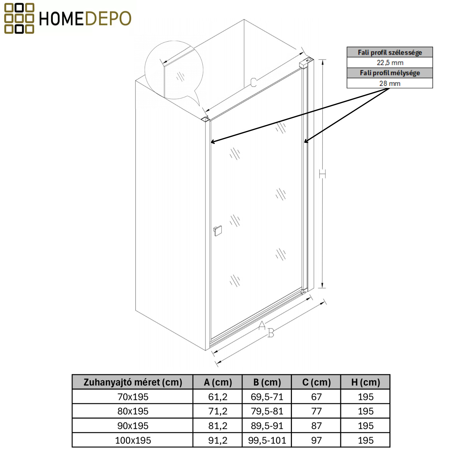 A zuhanyajtó fali profillal történő felszerelése praktikus megoldás, mivel lehetővé teszi a fali egyenetlenségek kiegyenlítését.