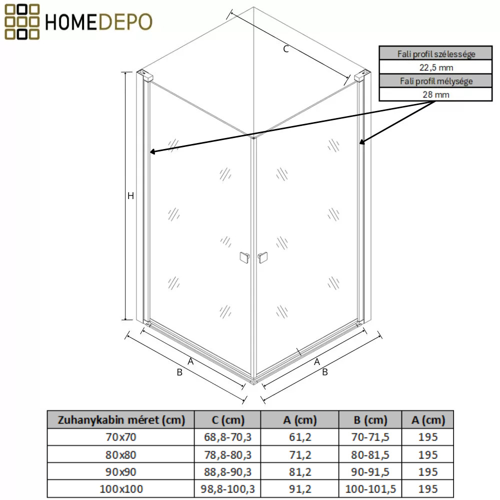 A zuhanykabin szabadon elhelyezhető zuhanytálcára vagy burkolatra közvetlenül. Az univerzális beépítési mód lehetővé teszi, hogy az ajtó a legkülönfélébb típusú fürdőszobában is elhelyezhető legyen.