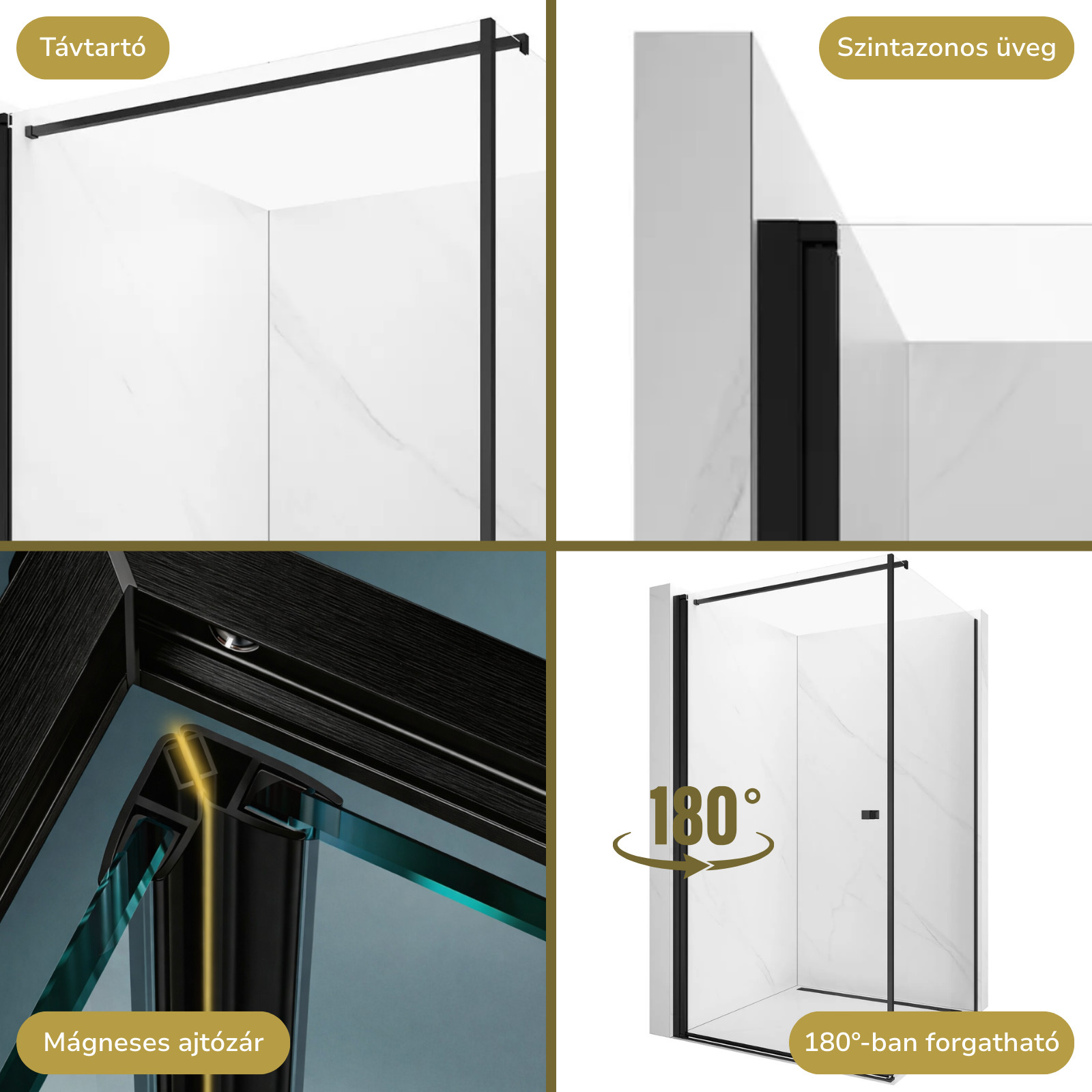 HD Nero "F" Black 70x80 cm szögletes nyílóajtós zuhanykabin fekete színű elemekkel