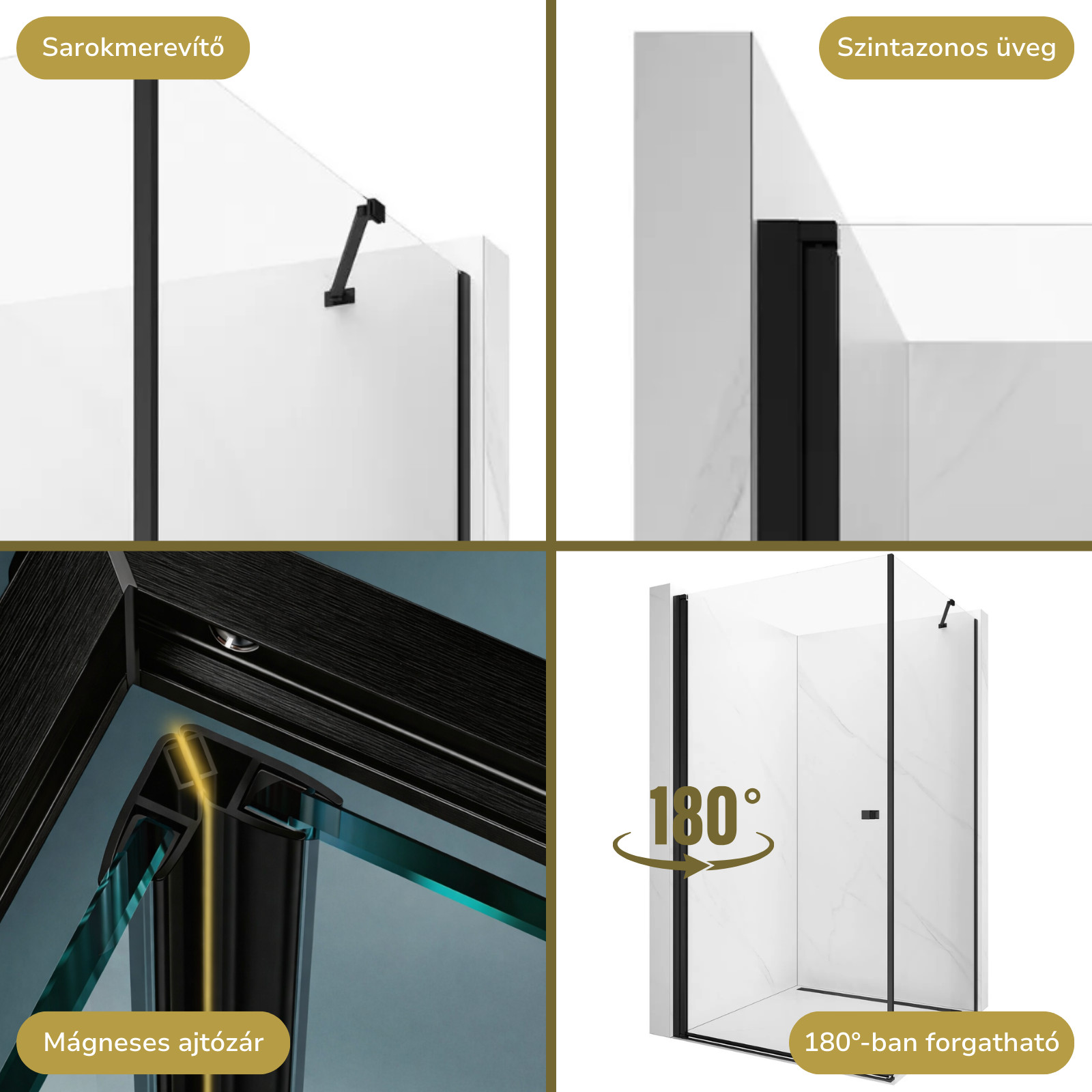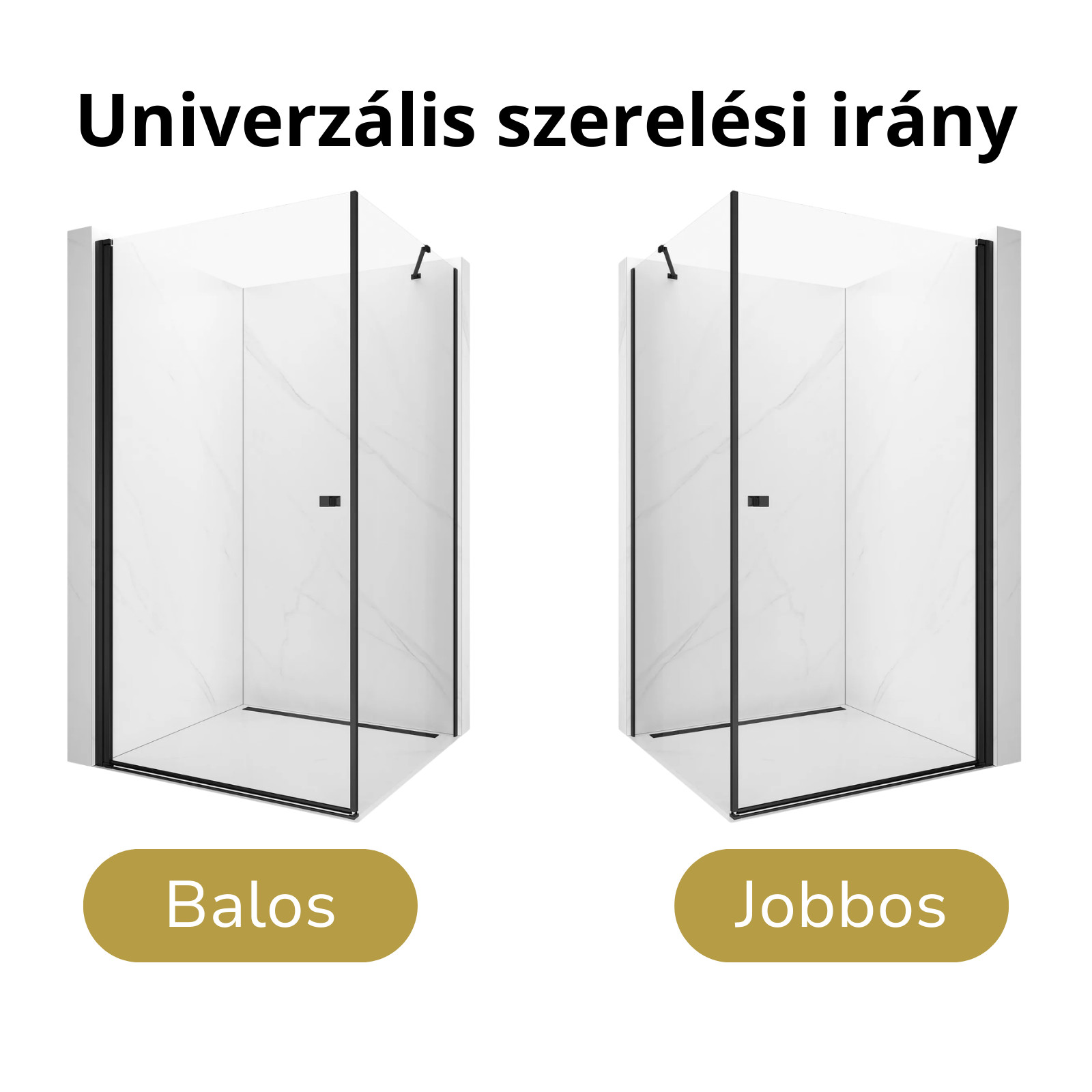 HD Nero "S" Black 70x80 cm szögletes nyílóajtós zuhanykabin fekete színű elemekkel