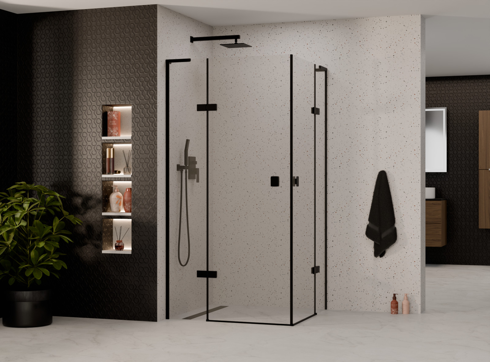 HD Nexon Duo "L" Black 90x80 cm szögletes nyílóajtós zuhanykabin fekete színű elemekkel
