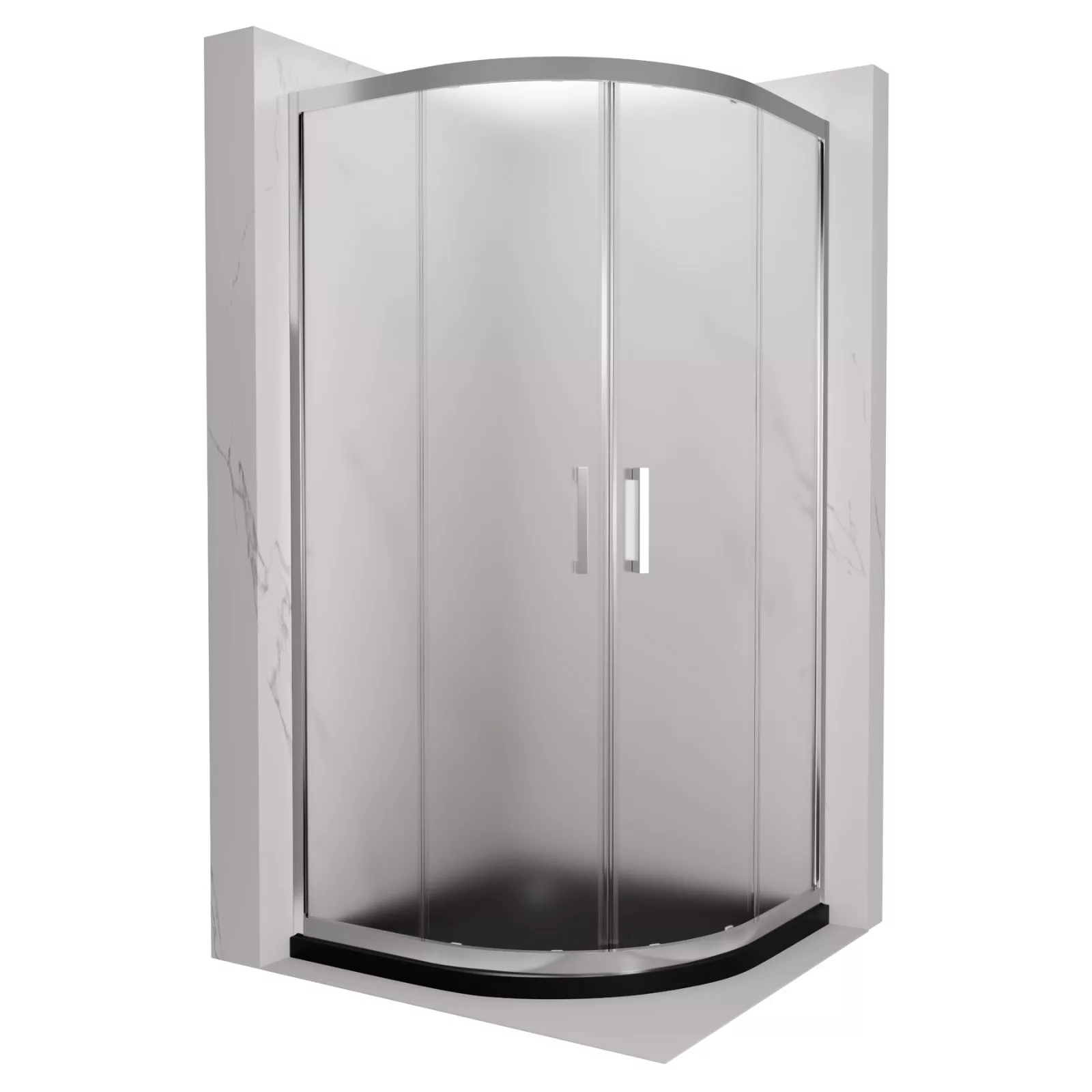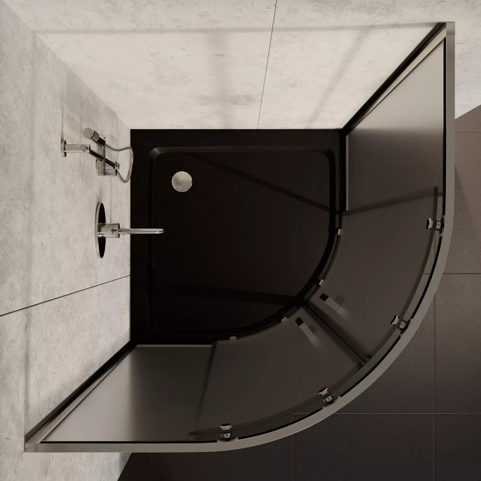 HD Nova 80x80 íves két tolóajtós zuhanykabin fekete slim zuhanytálcával és króm szifonnal