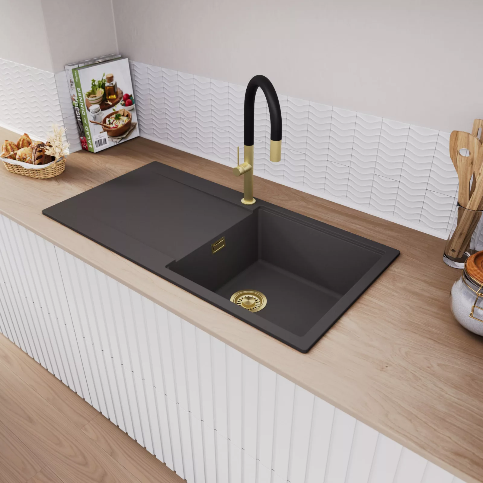 A mosogató prémium minőségű gránit kompozitból készült, amely kiváló ellenállást biztosít a mindennapi használat során keletkező karcolásokkal szemben. A strapabíró gránit felület hosszú távon is megőrzi esztétikus megjelenését, így a mosogató intenzív igénybevétel mellett is megmarad újszerű állapotában.