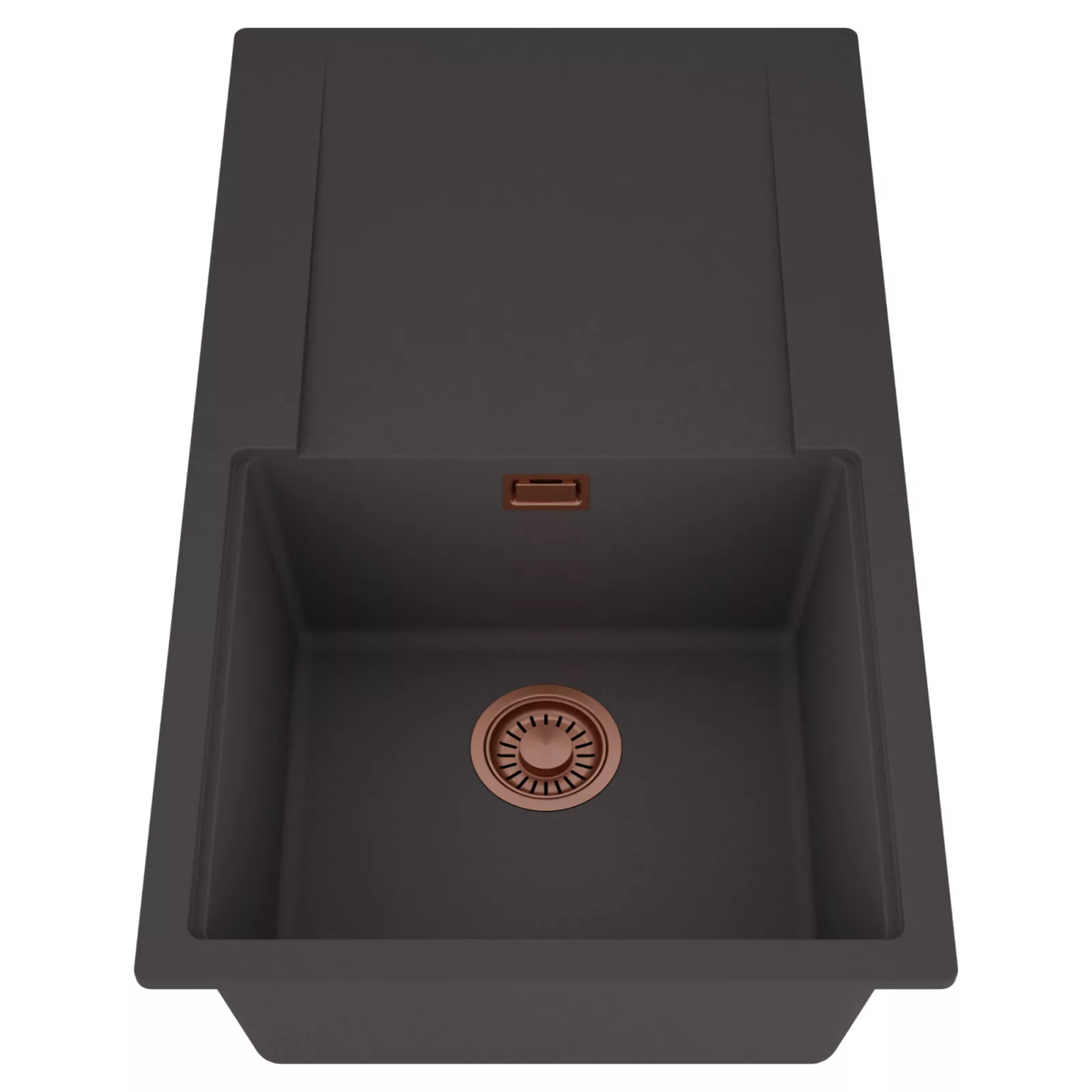 A mosogató prémium minőségű gránit kompozitból készült, amely kiváló ellenállást biztosít a mindennapi használat során keletkező karcolásokkal szemben. A strapabíró gránit felület hosszú távon is megőrzi esztétikus megjelenését, így a mosogató intenzív igénybevétel mellett is megmarad újszerű állapotában.