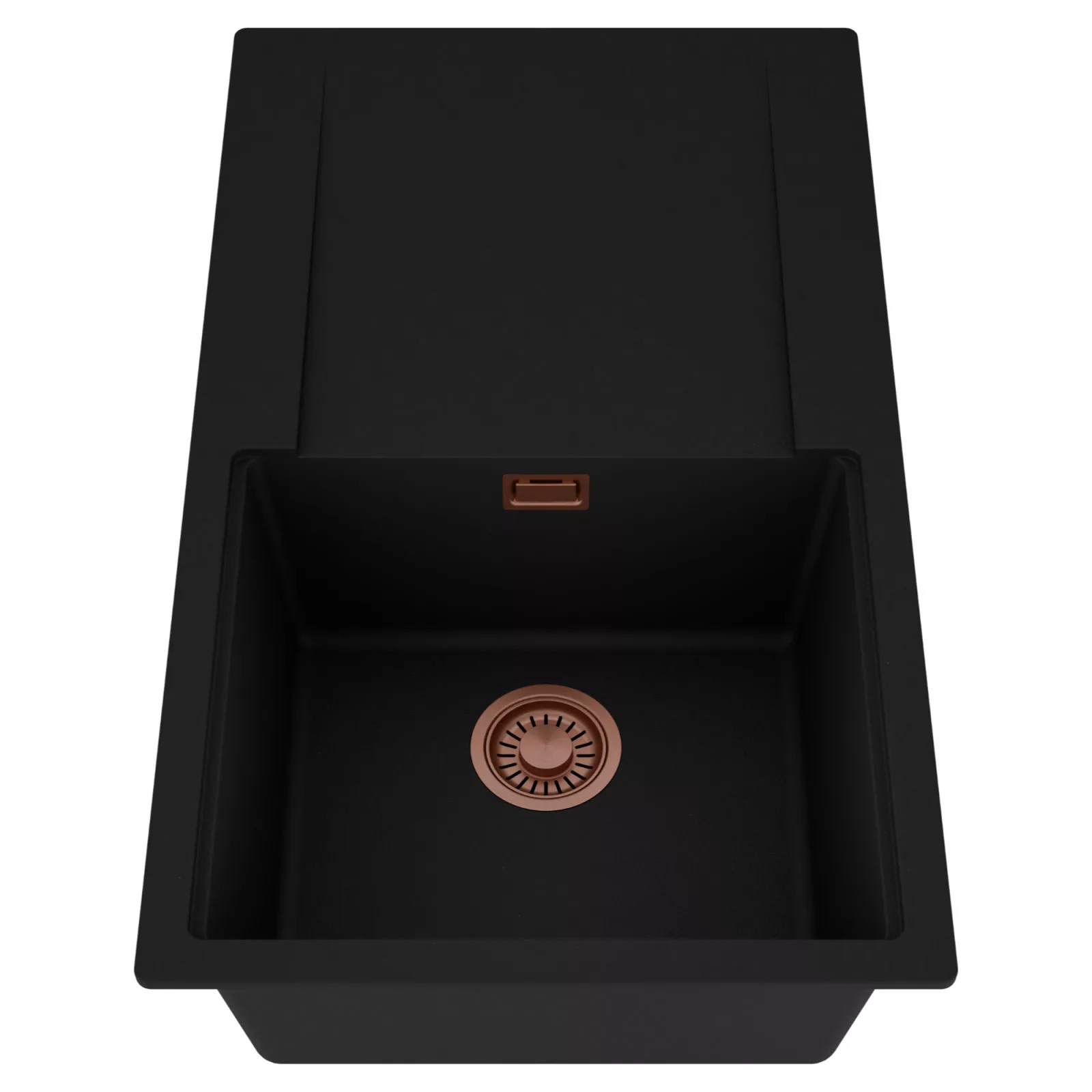 A mosogató prémium minőségű gránit kompozitból készült, amely kiváló ellenállást biztosít a mindennapi használat során keletkező karcolásokkal szemben. A strapabíró gránit felület hosszú távon is megőrzi esztétikus megjelenését, így a mosogató intenzív igénybevétel mellett is megmarad újszerű állapotában.