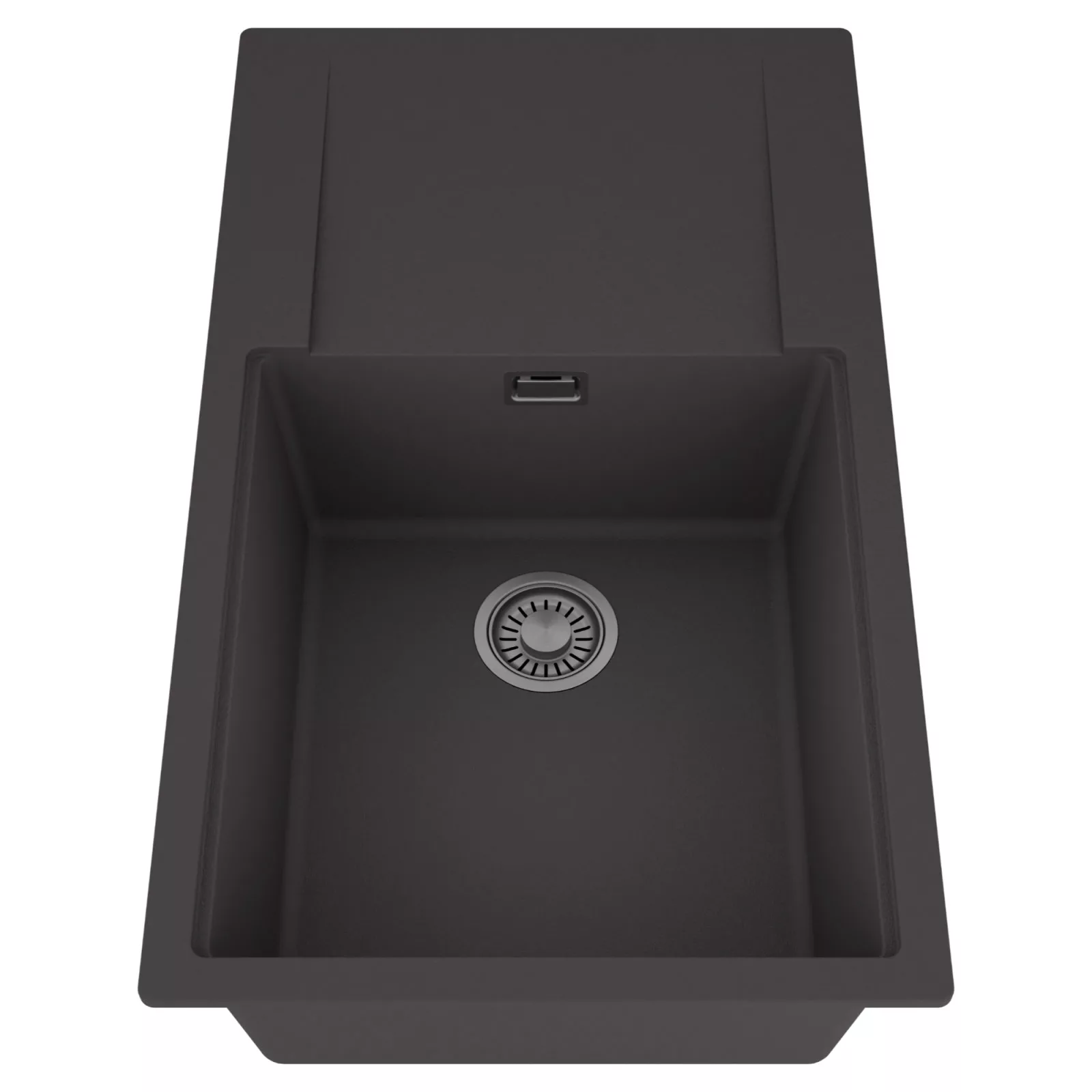A mosogató prémium minőségű gránit kompozitból készült, amely kiváló ellenállást biztosít a mindennapi használat során keletkező karcolásokkal szemben. A strapabíró gránit felület hosszú távon is megőrzi esztétikus megjelenését, így a mosogató intenzív igénybevétel mellett is megmarad újszerű állapotában.