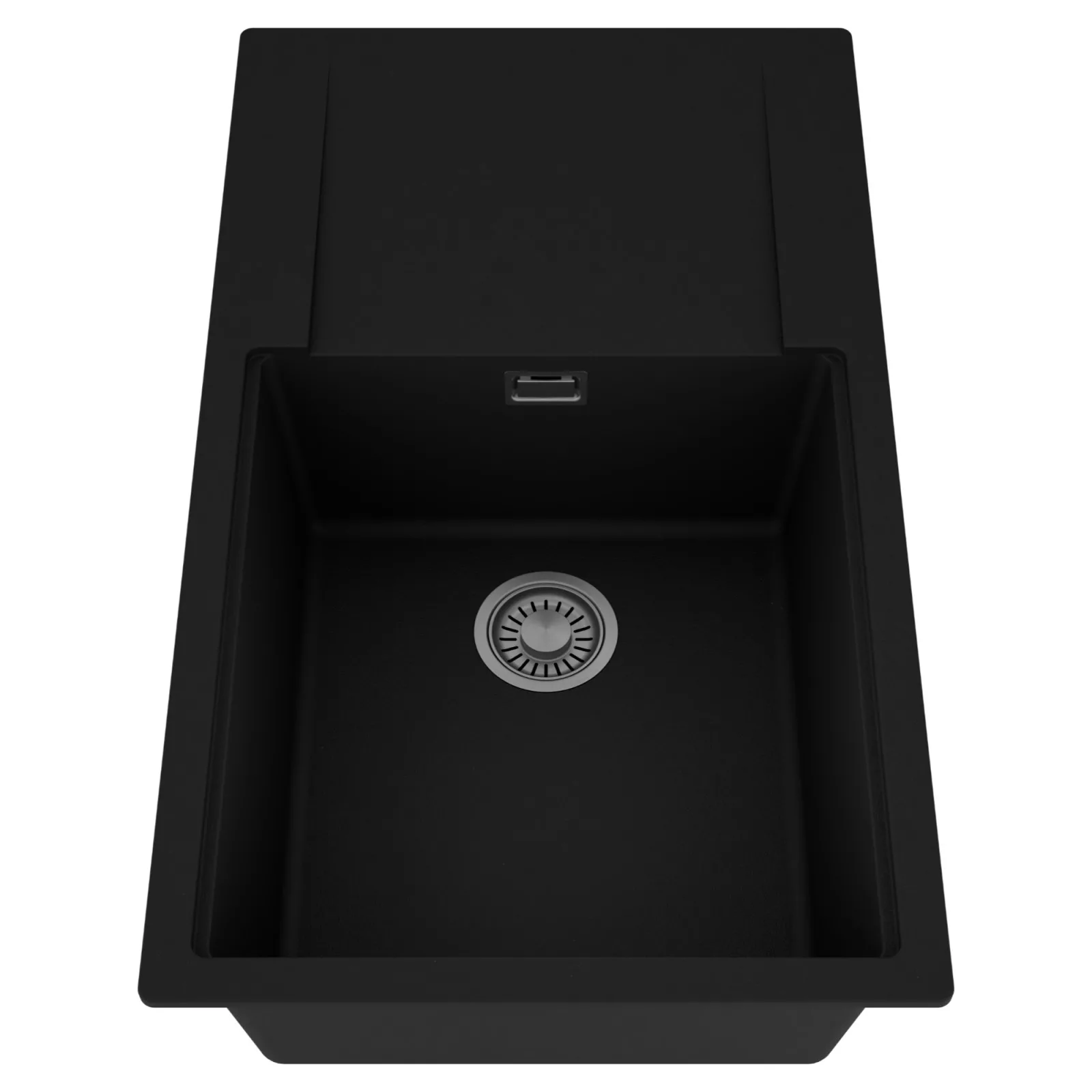 A mosogató prémium minőségű gránit kompozitból készült, amely kiváló ellenállást biztosít a mindennapi használat során keletkező karcolásokkal szemben. A strapabíró gránit felület hosszú távon is megőrzi esztétikus megjelenését, így a mosogató intenzív igénybevétel mellett is megmarad újszerű állapotában.