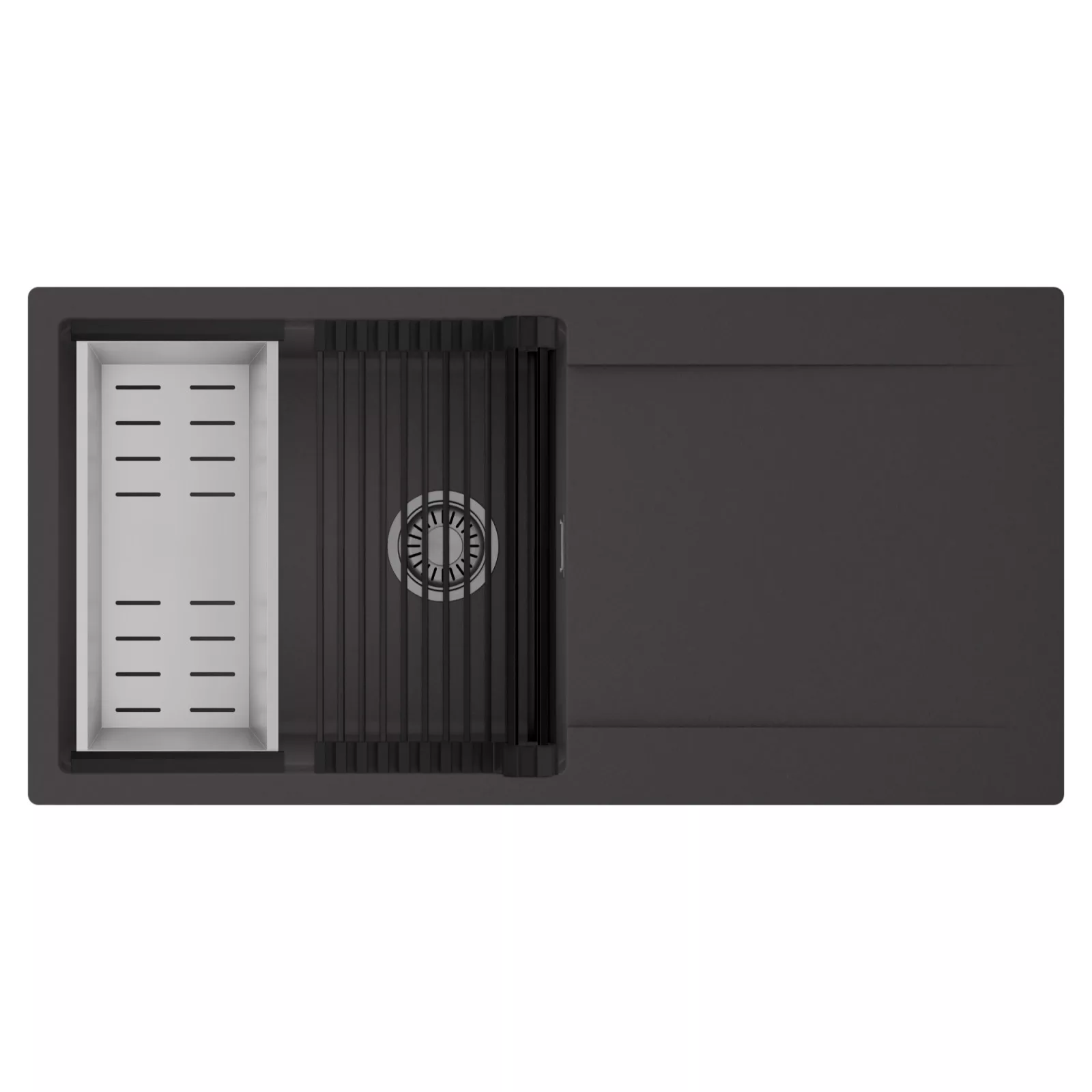 HD Onyx 100 egymedencés mosogatótálca szett, csepegtetőráccsal és kosárral, matt antracit