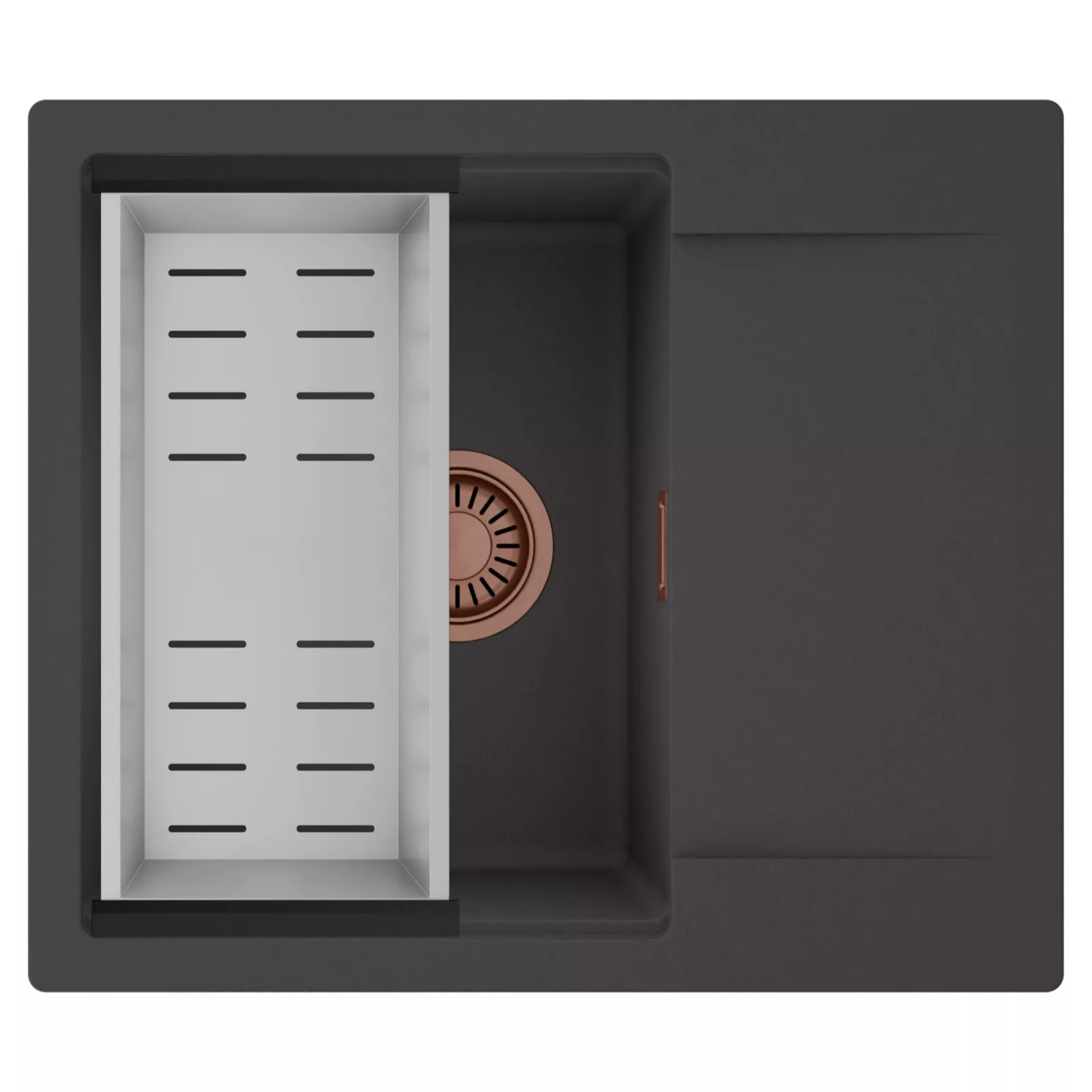 HD Onyx 58 egymedencés mosogatótálca szett, csepegtetőkosárral, matt antracit