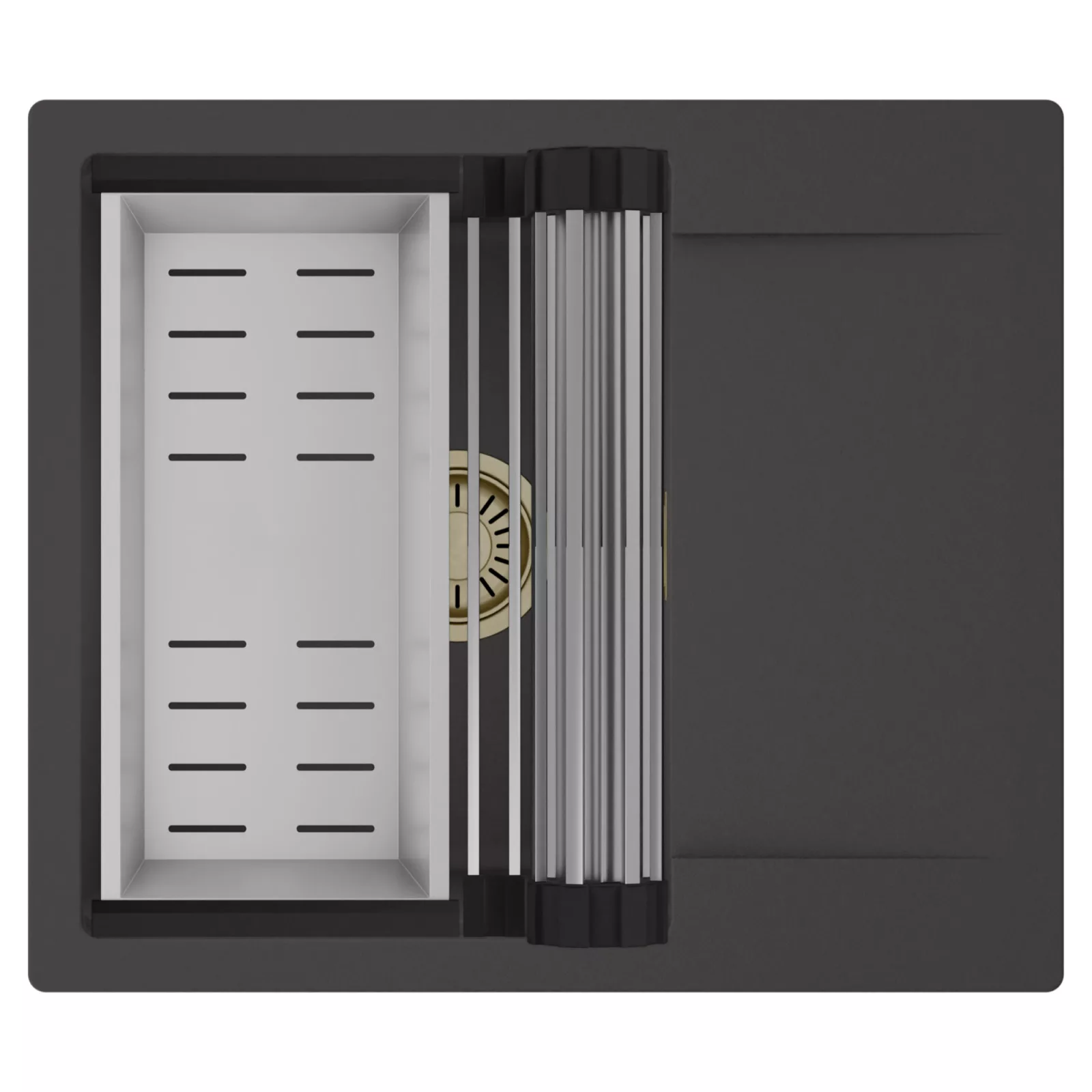 HD Onyx 58 egymedencés mosogatótálca szett, csepegtetőráccsal és kosárral, matt antracit