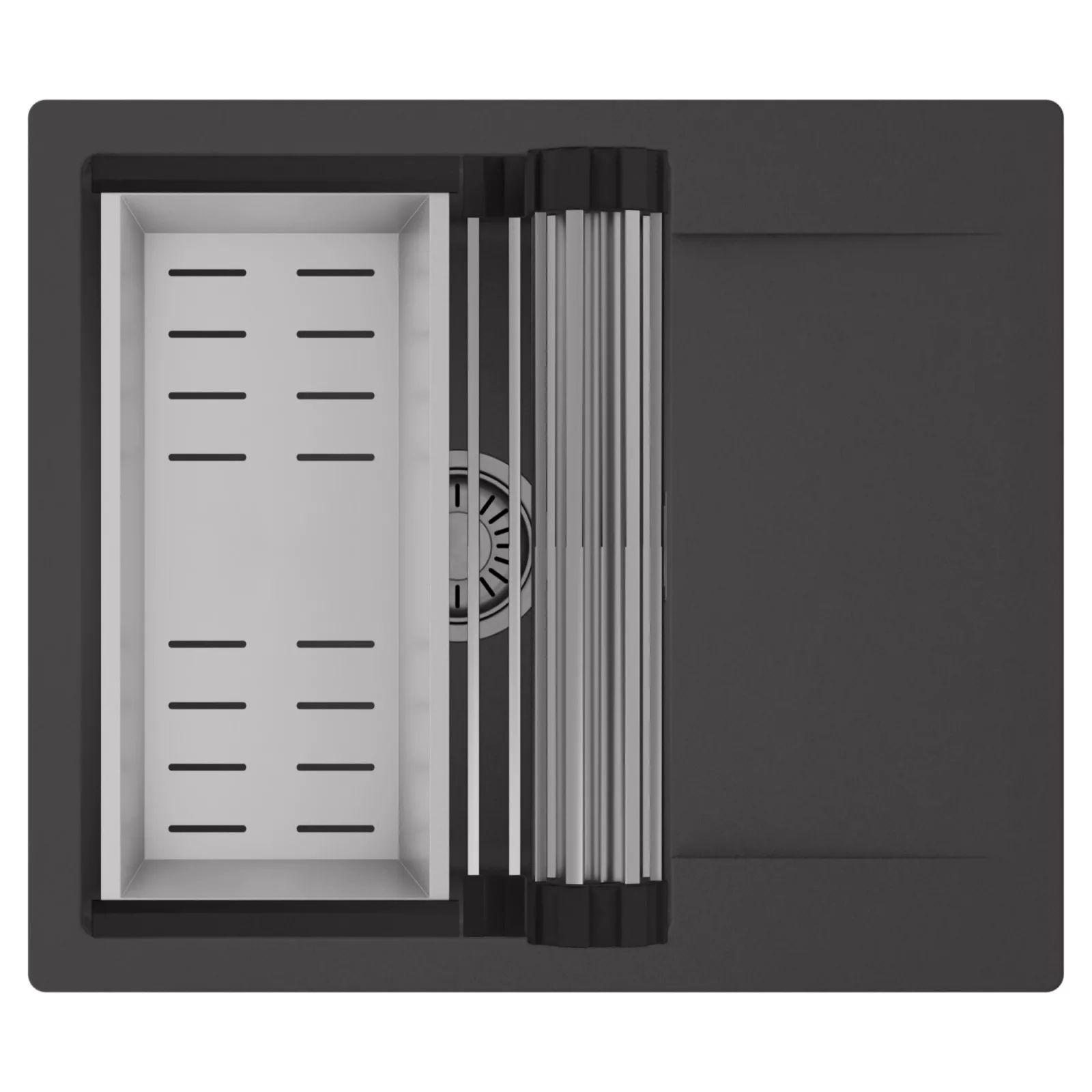 HD Onyx 58 egymedencés mosogatótálca szett, csepegtetőráccsal és kosárral, matt antracit