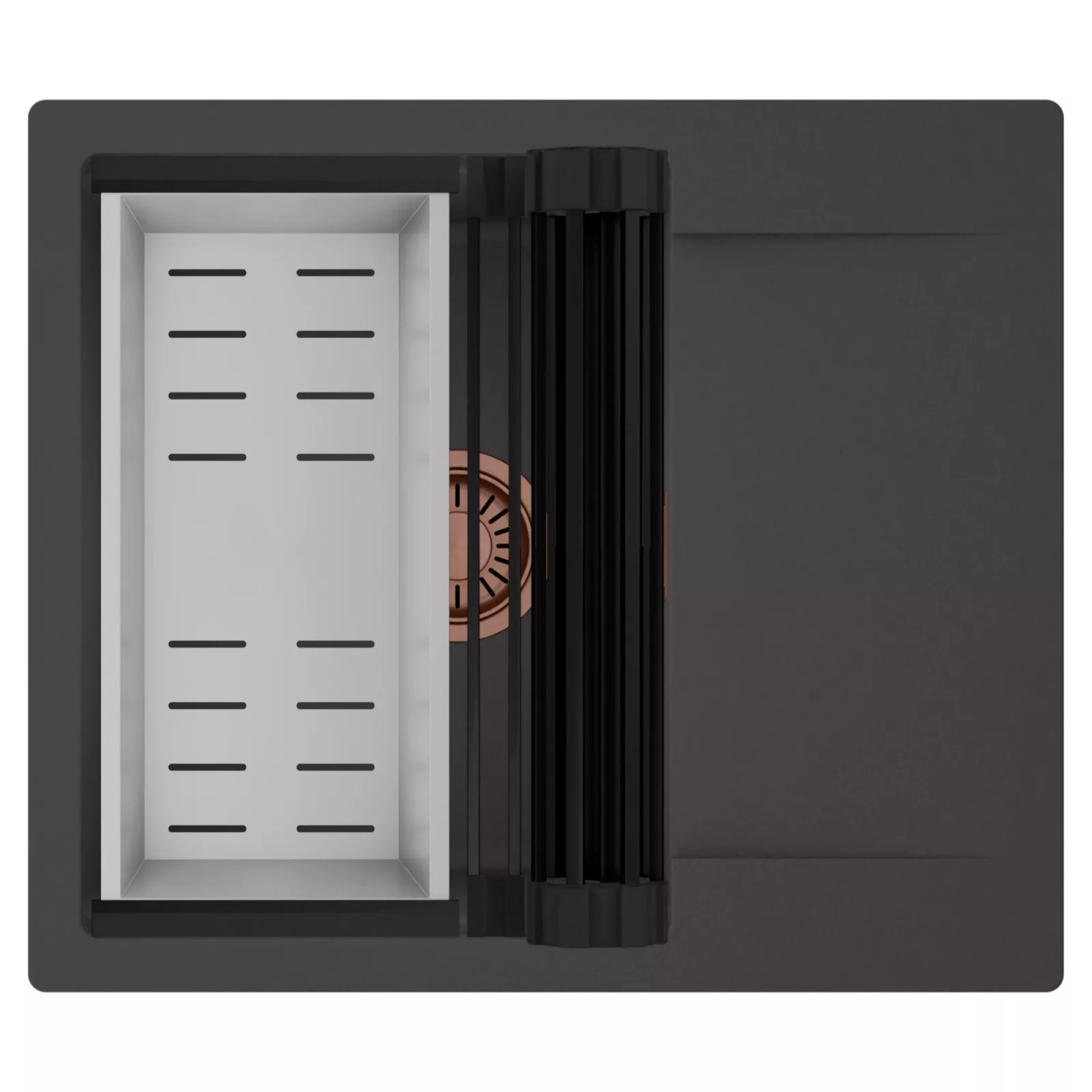HD Onyx 58 egymedencés mosogatótálca szett, csepegtetőráccsal és kosárral, matt antracit