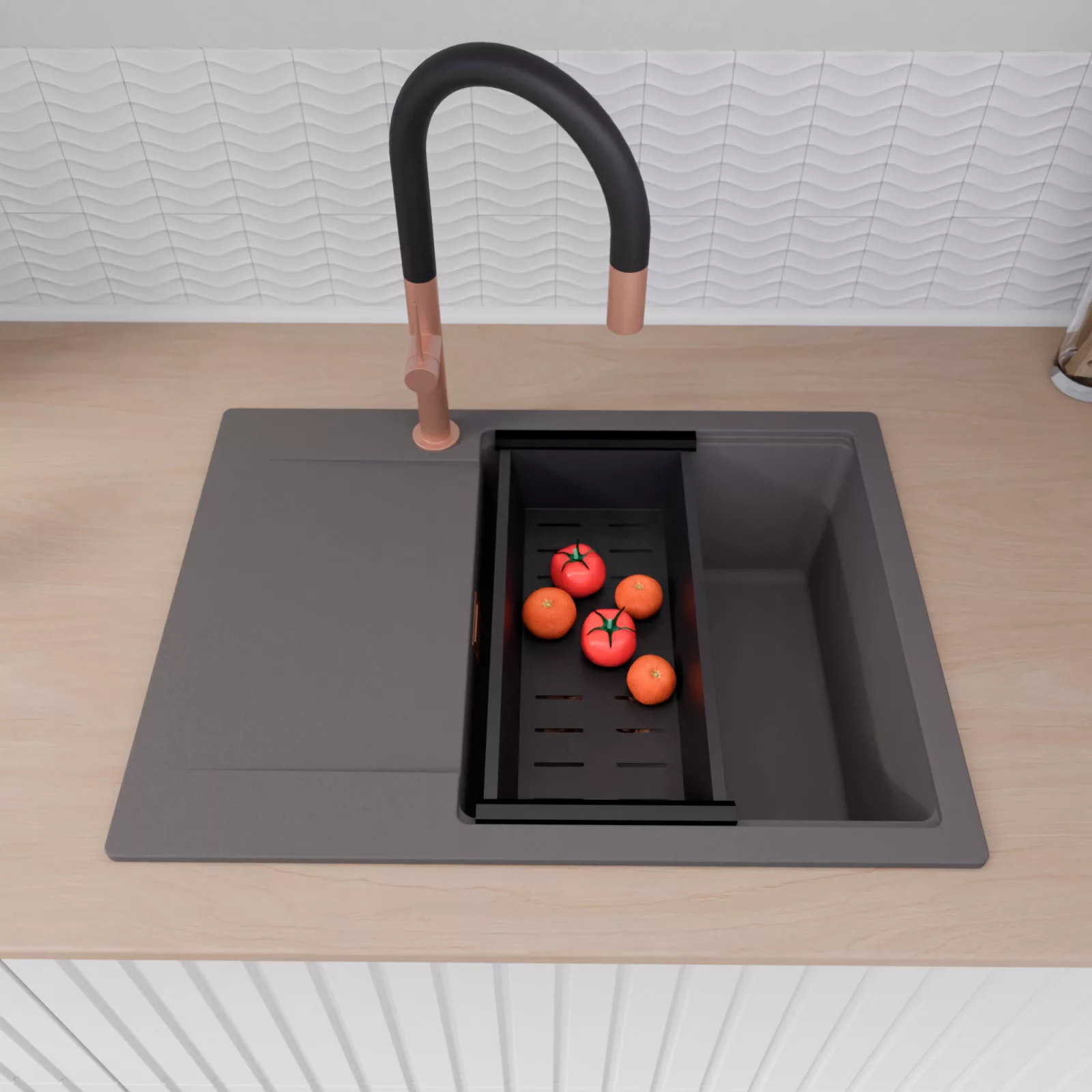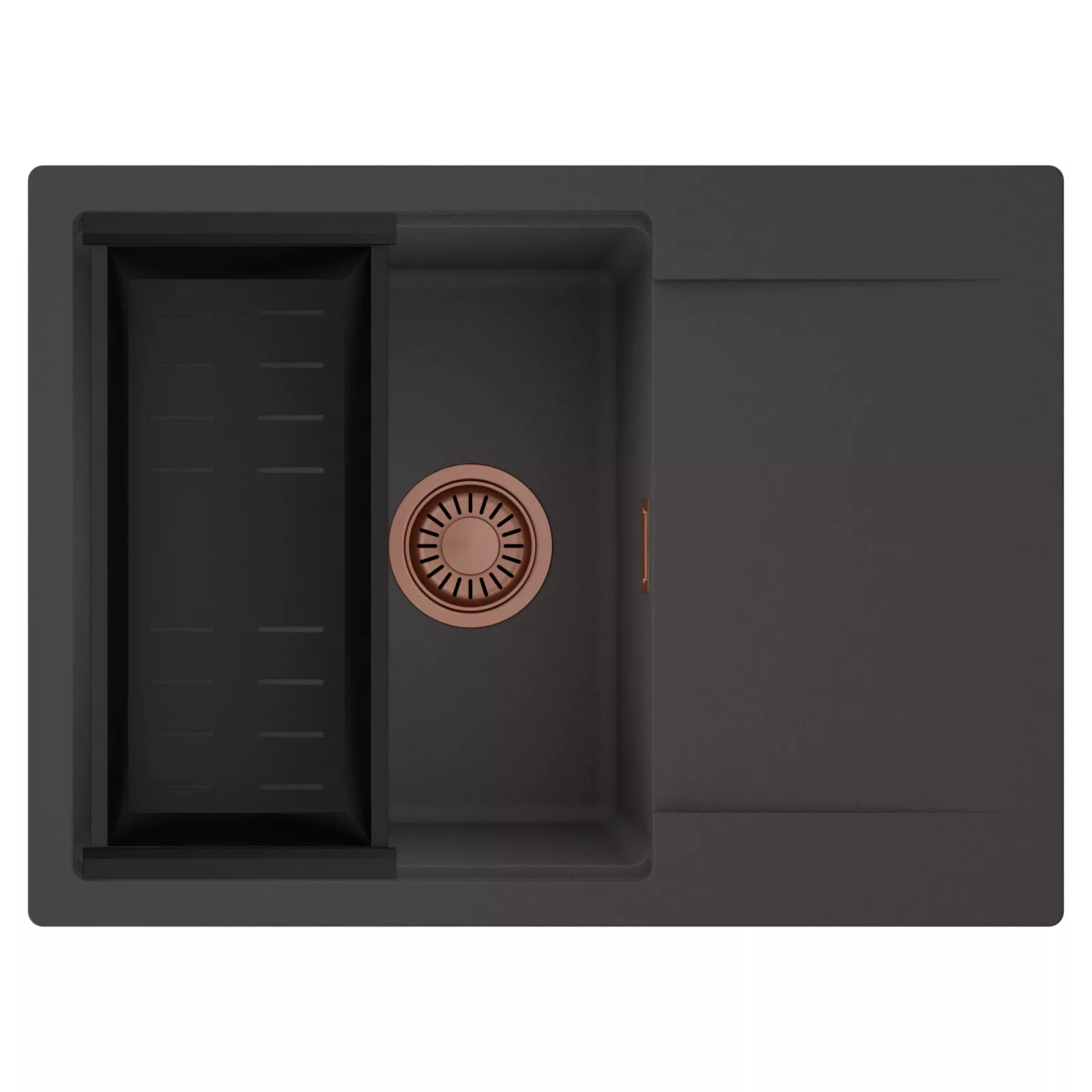 A mosogató prémium minőségű gránit kompozitból készült. Letisztult megjelenése mellett rendkívül praktikus, így bármilyen stílusú konyhába harmonikusan illeszkedik. A strapabíró gránit anyag hosszú távon is megbízható használatot garantál.