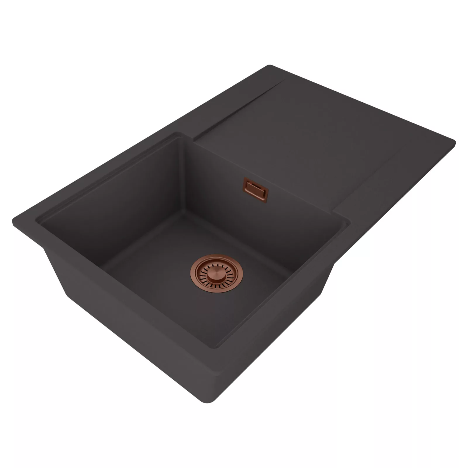 A mosogató prémium minőségű gránit kompozitból készült. Letisztult megjelenése mellett rendkívül praktikus, így bármilyen stílusú konyhába harmonikusan illeszkedik. A strapabíró gránit anyag hosszú távon is megbízható használatot garantál.