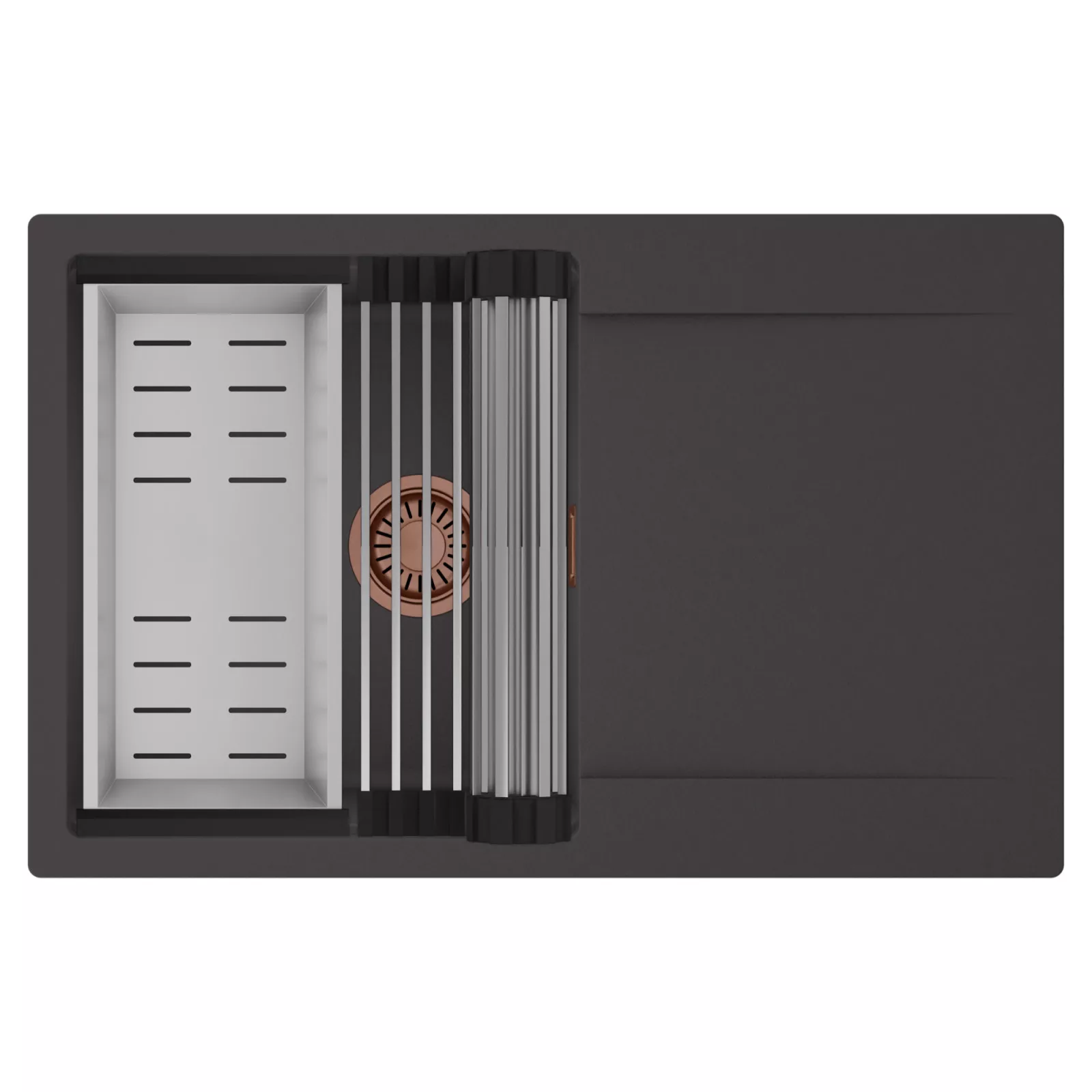 HD Onyx 78 egymedencés mosogatótálca szett, csepegtetőráccsal és kosárral, matt antracit