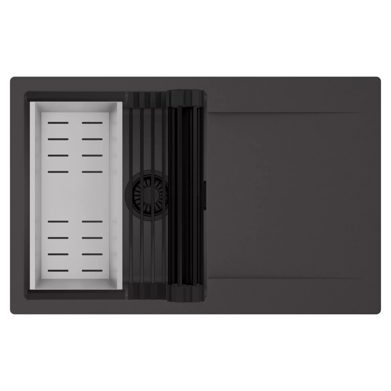 HD Onyx 78 egymedencés mosogatótálca szett, csepegtetőráccsal és kosárral, matt antracit