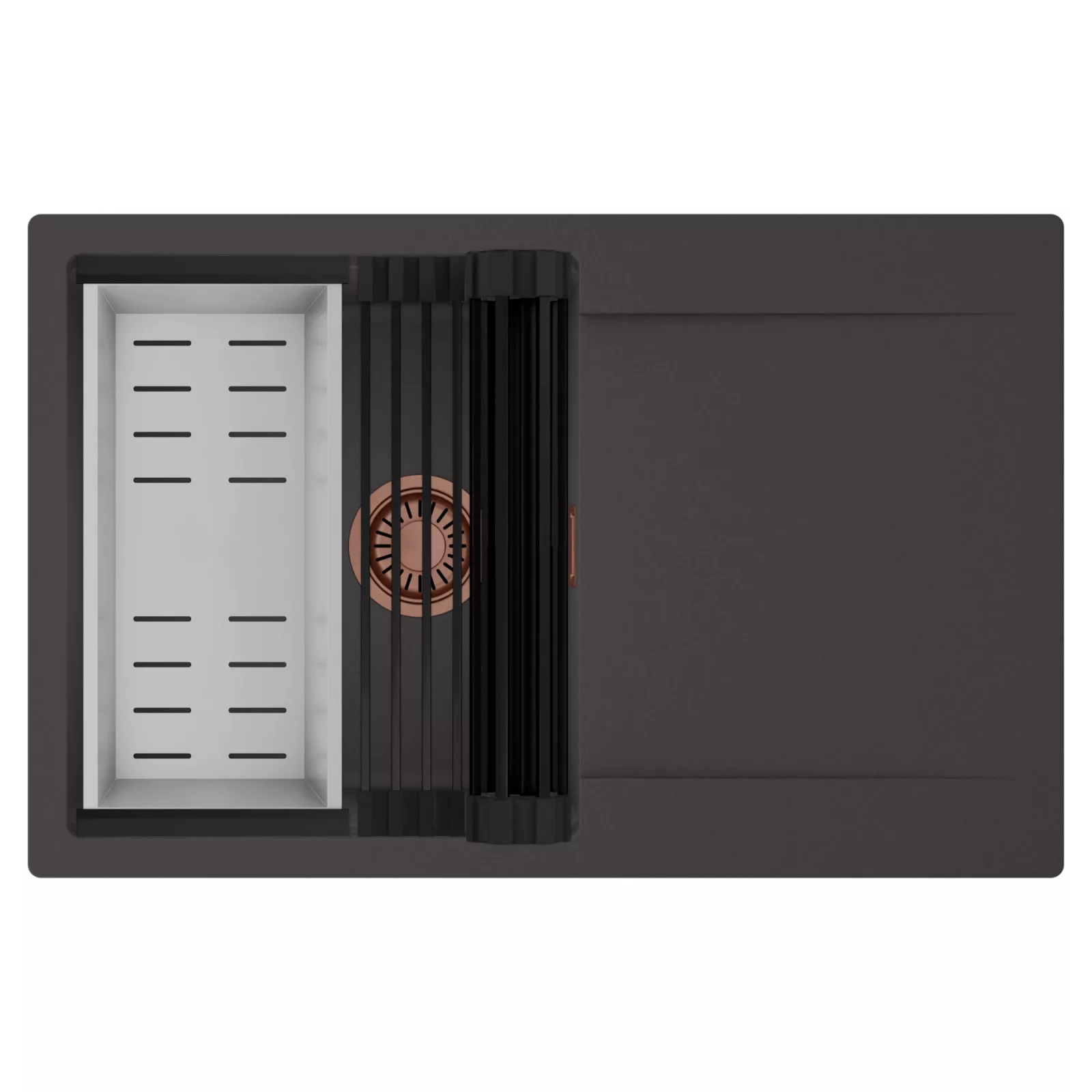 HD Onyx 78 egymedencés mosogatótálca szett, csepegtetőráccsal és kosárral, matt antracit