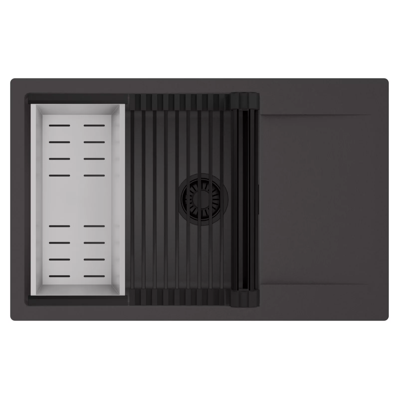 HD Onyx 78-XL egymedencés mosogatótálca szett, csepegtetőráccsal és kosárral, matt antracit