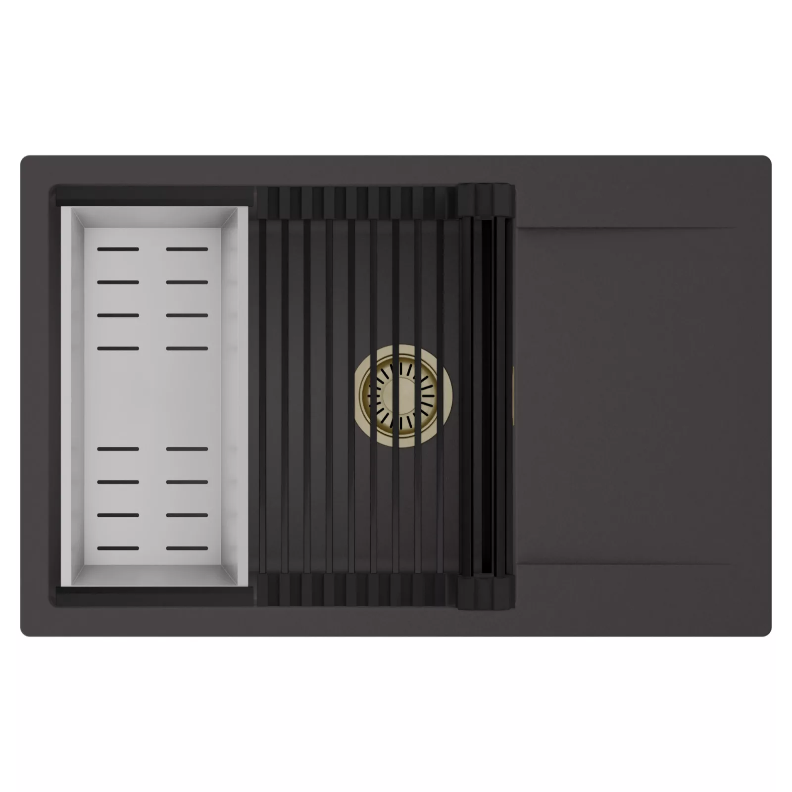HD Onyx 78-XL egymedencés mosogatótálca szett, csepegtetőráccsal és kosárral, matt antracit