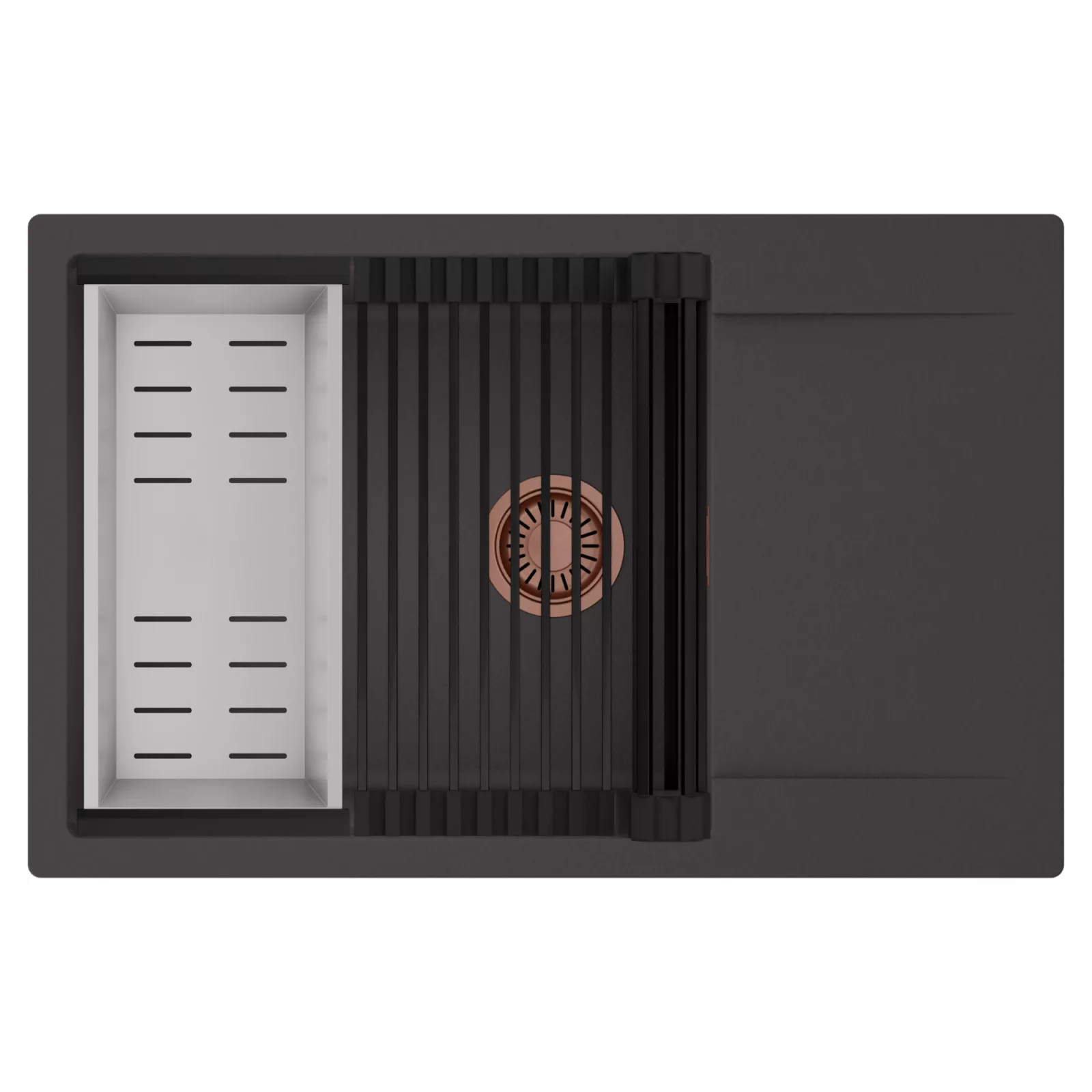 HD Onyx 78-XL egymedencés mosogatótálca szett, csepegtetőráccsal és kosárral, matt antracit