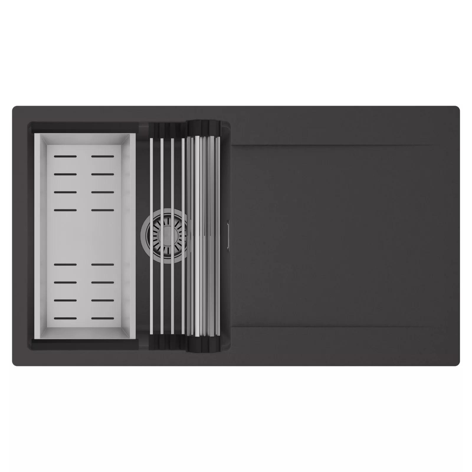 HD Onyx 86 egymedencés mosogatótálca szett, csepegtetőráccsal és kosárral, matt antracit