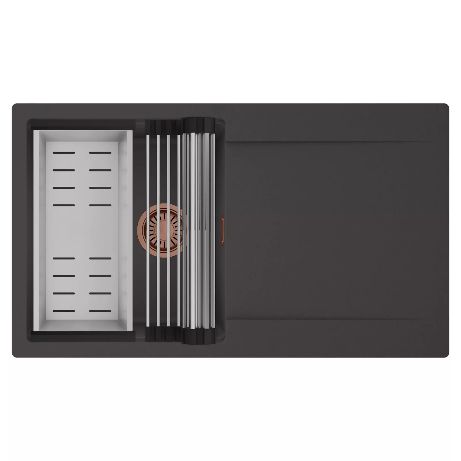 HD Onyx 86 egymedencés mosogatótálca szett, csepegtetőráccsal és kosárral, matt antracit