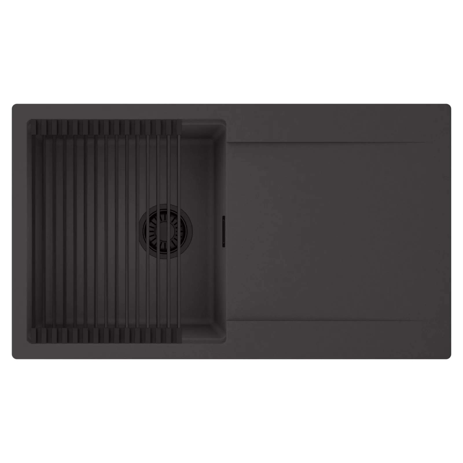 HD Onyx 86 egymedencés mosogatótálca szett, csepegtetőráccsal, matt antracit