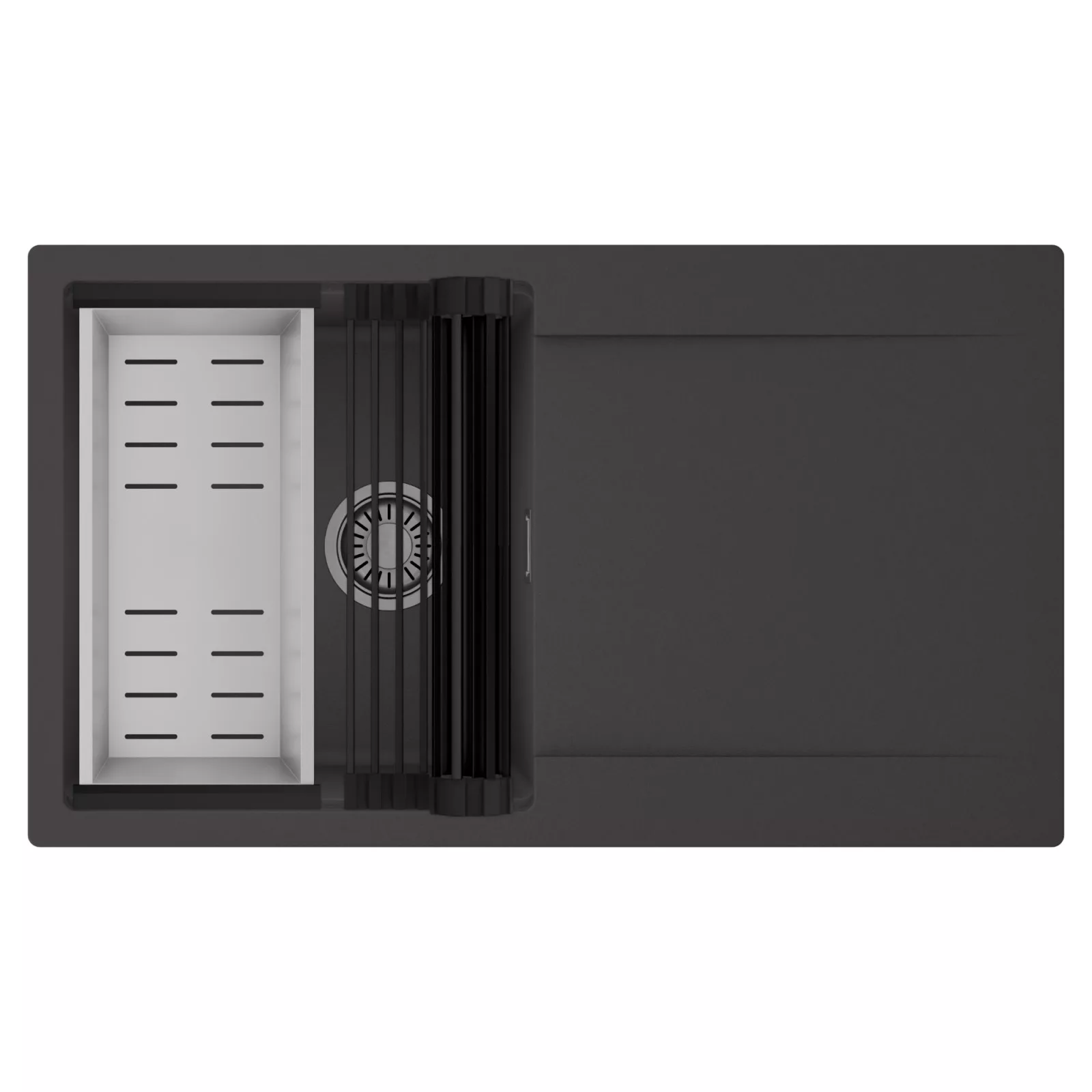 HD Onyx 86 egymedencés mosogatótálca szett, csepegtetőráccsal és kosárral, matt antracit
