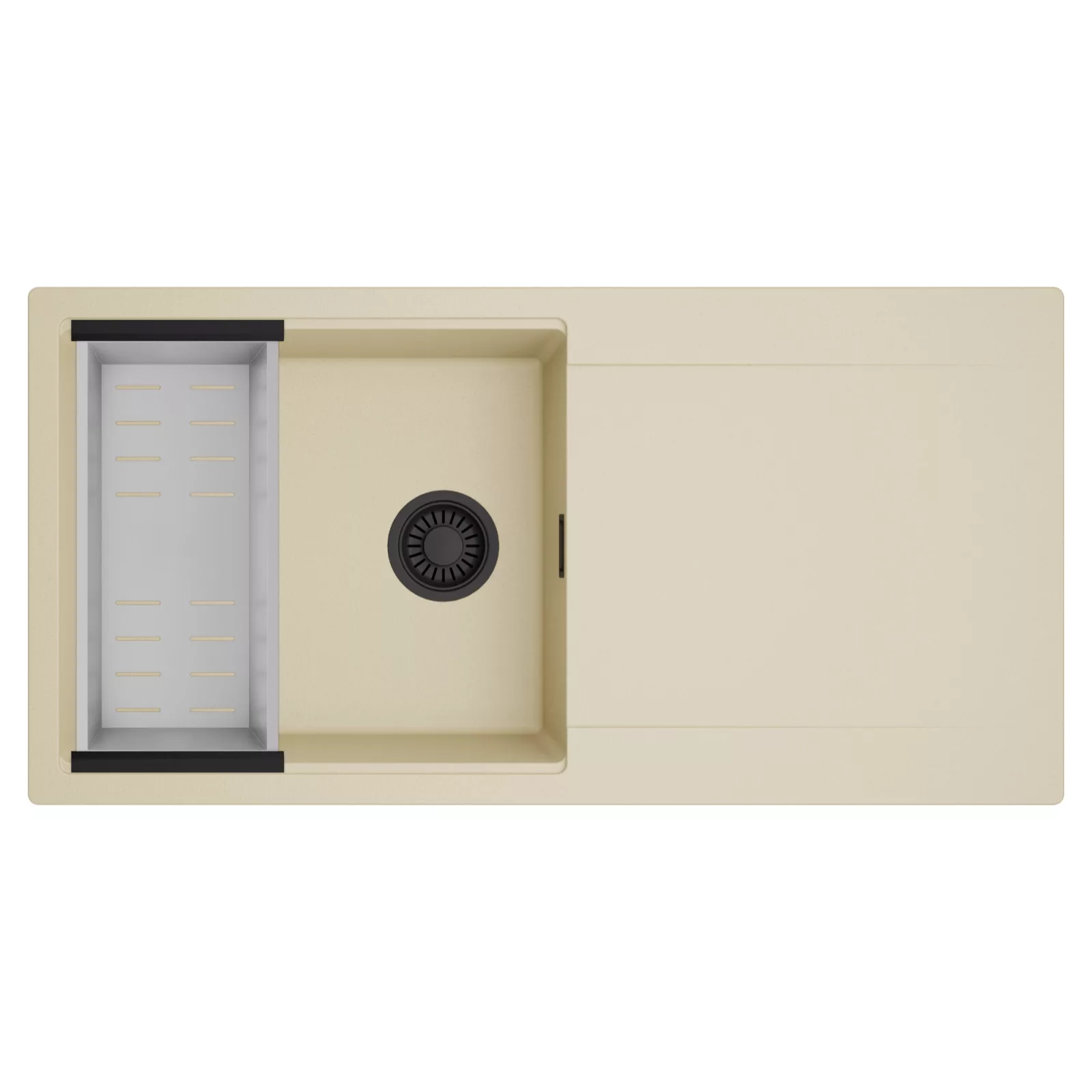 HD Onyx Beige 100 egymedencés mosogatótálca szett, csepegtetőkosárral, soft bézs
