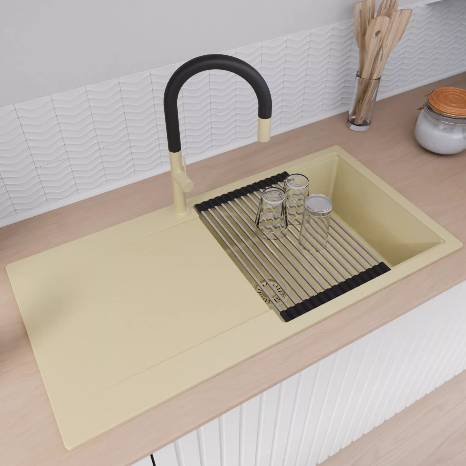 HD Onyx Beige 100 egymedencés mosogatótálca szett, csepegtetőráccsal, soft bézs
