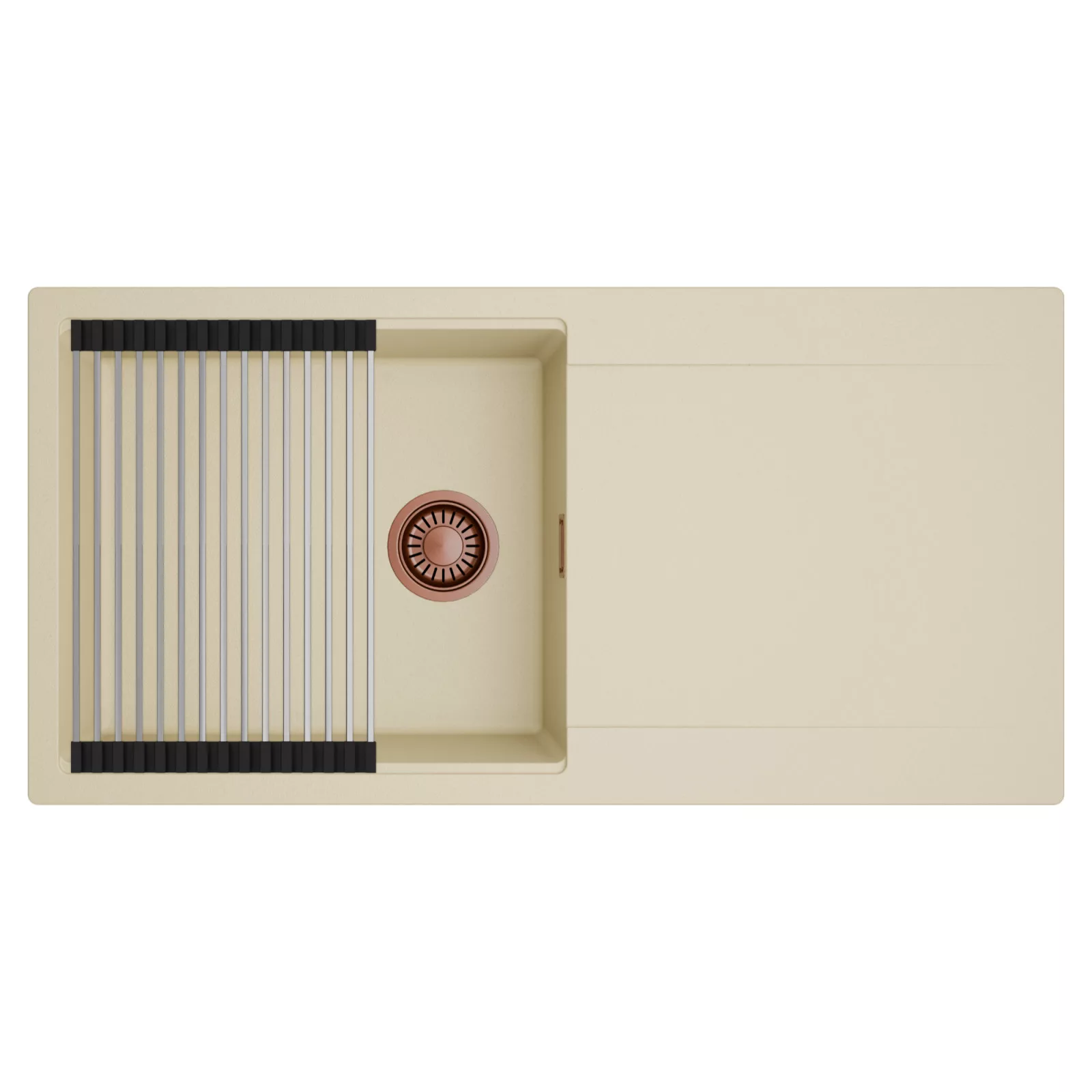 HD Onyx Beige 100 egymedencés mosogatótálca szett, csepegtetőráccsal, soft bézs
