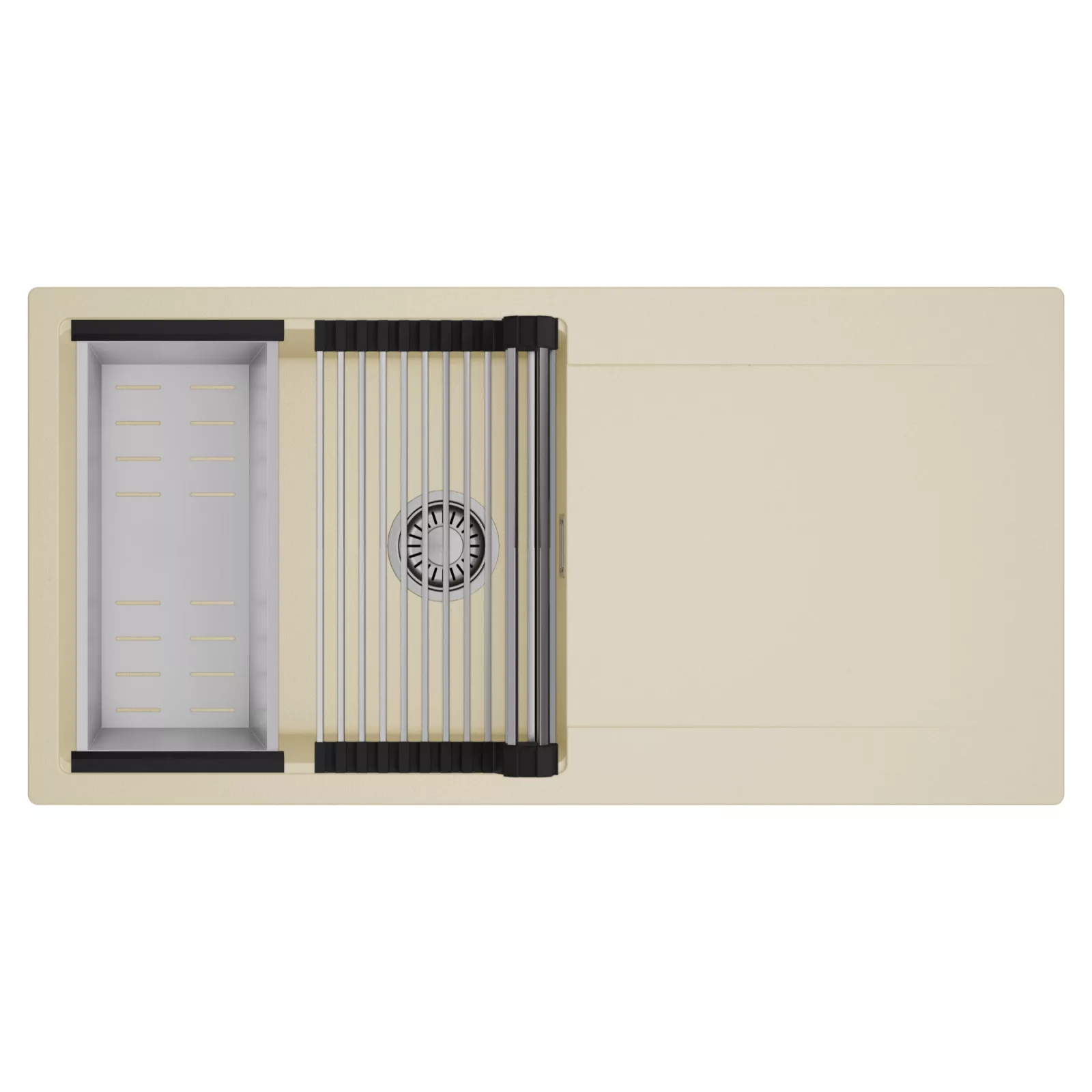 HD Onyx Beige 100 egymedencés mosogatótálca szett, csepegtetőráccsal és kosárral, soft bézs