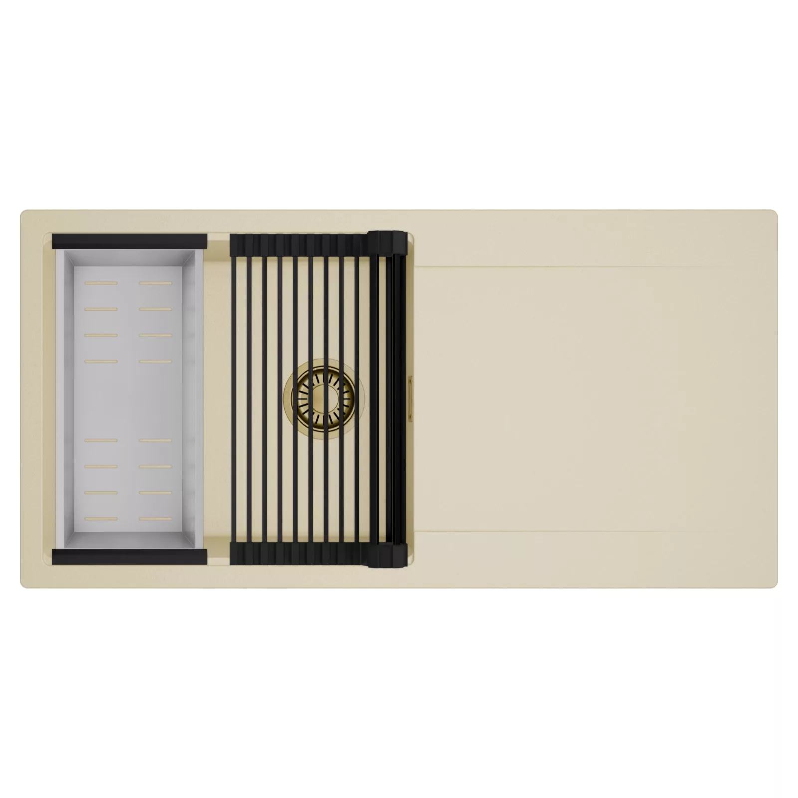 HD Onyx Beige 100 egymedencés mosogatótálca szett, csepegtetőráccsal és kosárral, soft bézs