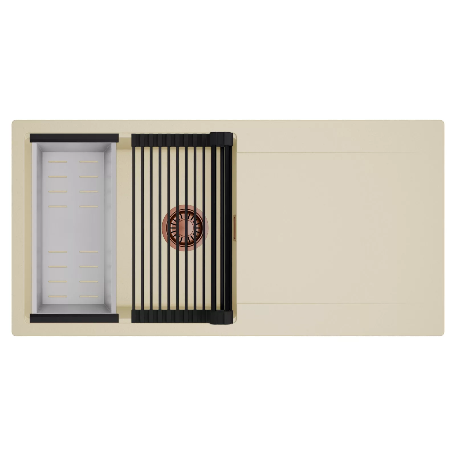 HD Onyx Beige 100 egymedencés mosogatótálca szett, csepegtetőráccsal és kosárral, soft bézs