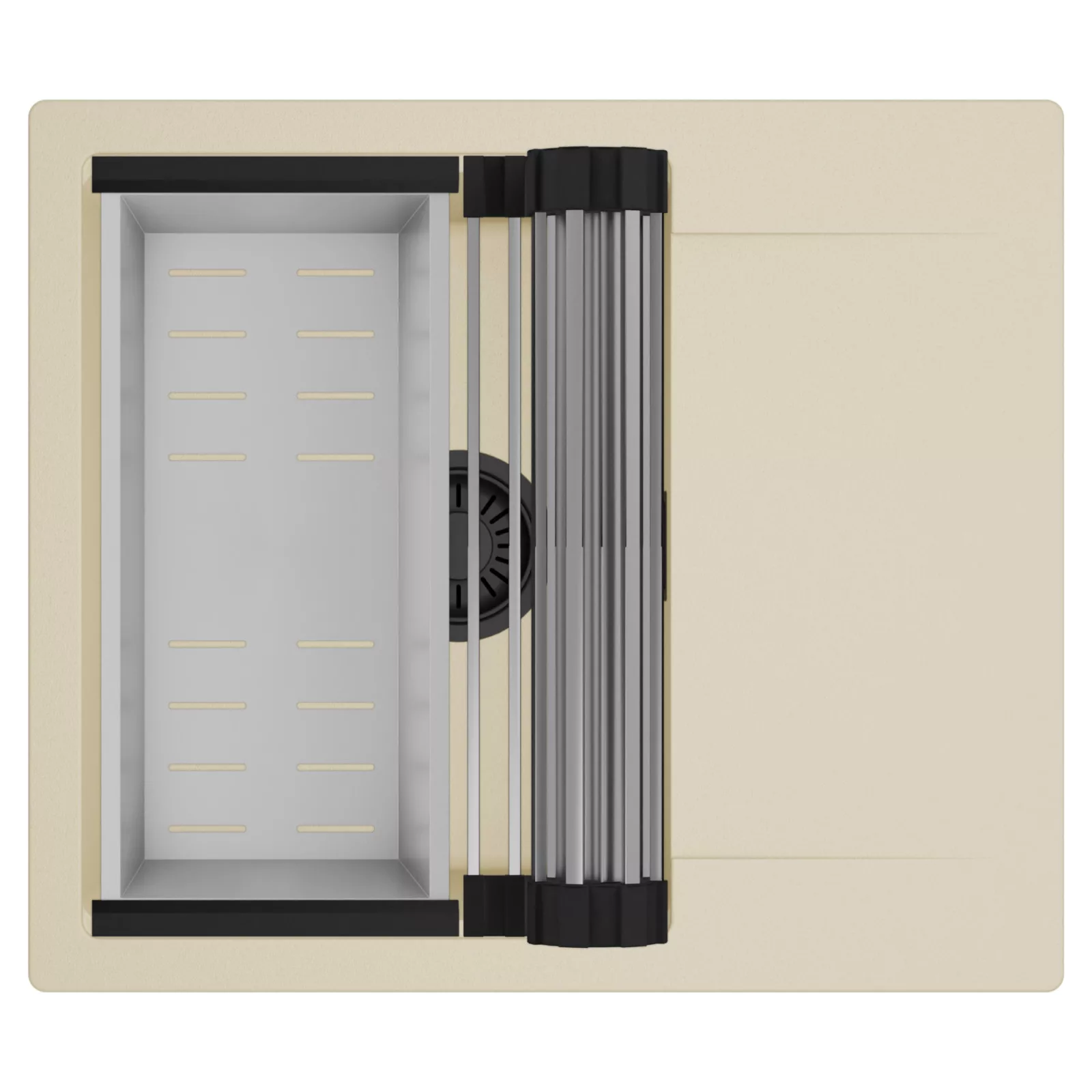 HD Onyx Beige 58 egymedencés mosogatótálca szett, csepegtetőráccsal és kosárral, soft bézs