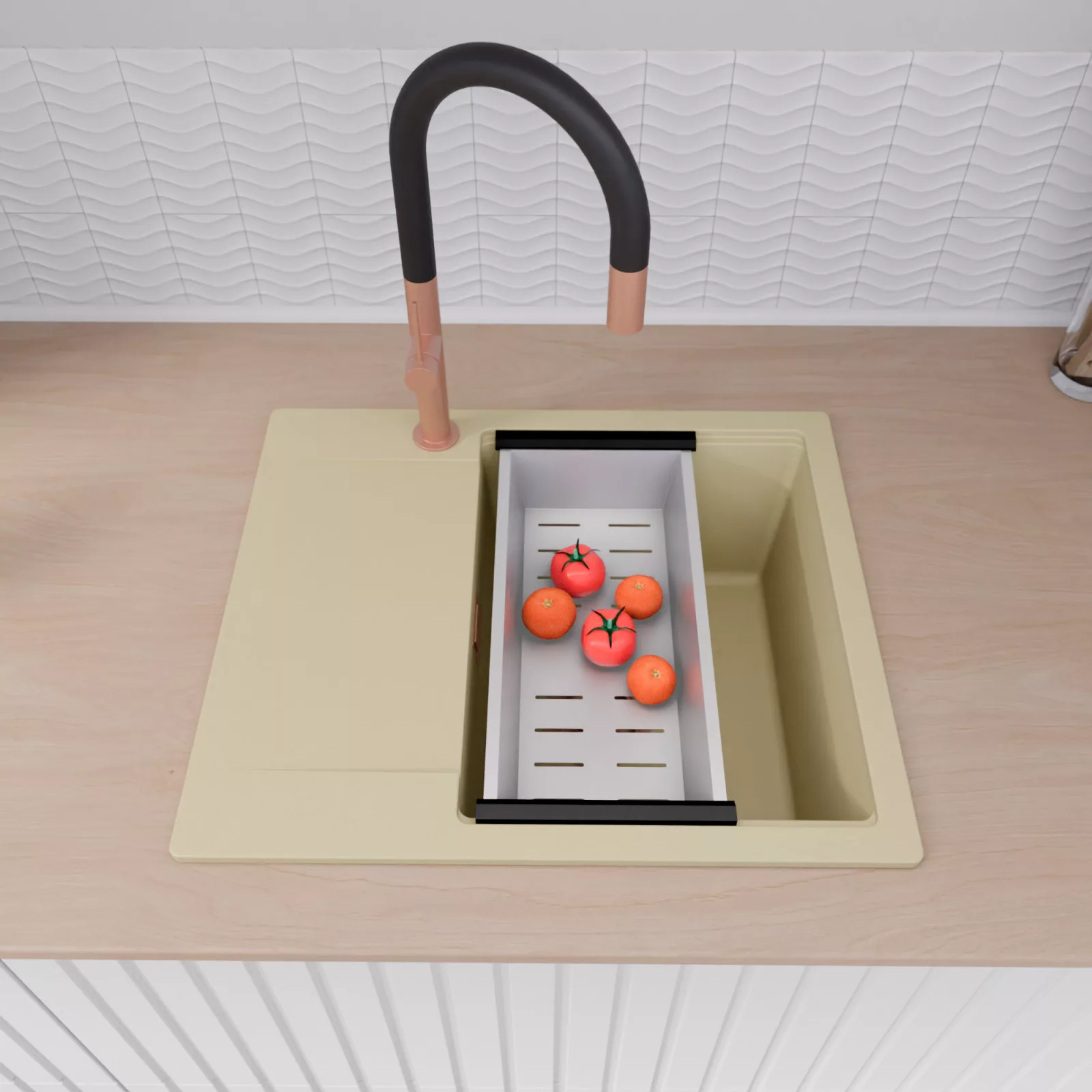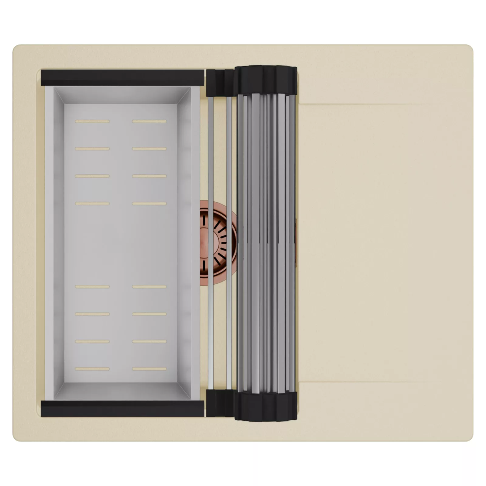 HD Onyx Beige 58 egymedencés mosogatótálca szett, csepegtetőráccsal és kosárral, soft bézs