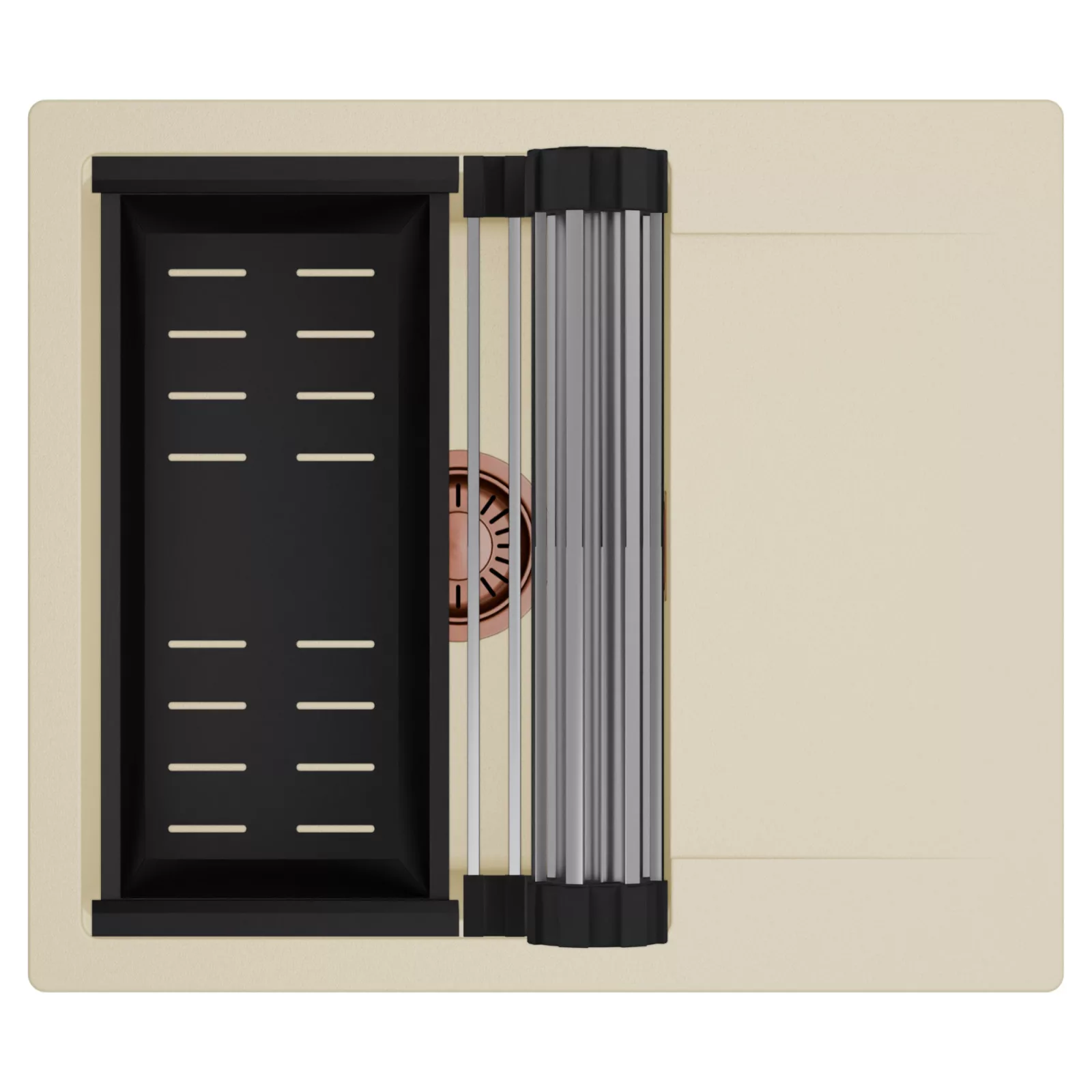 HD Onyx Beige 58 egymedencés mosogatótálca szett, csepegtetőráccsal és kosárral, soft bézs