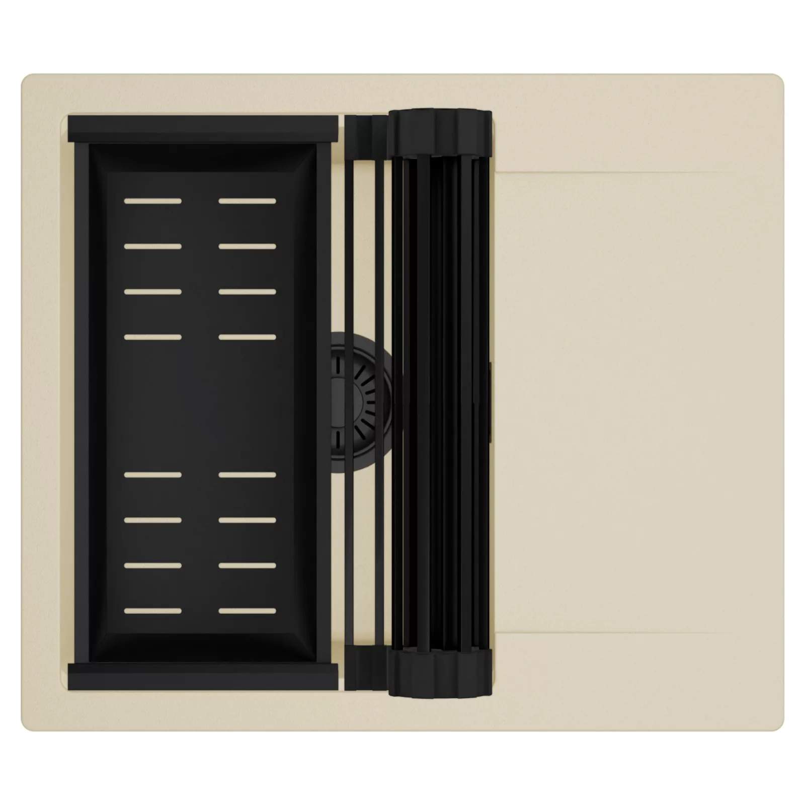 HD Onyx Beige 58 egymedencés mosogatótálca szett, csepegtetőráccsal és kosárral, soft bézs
