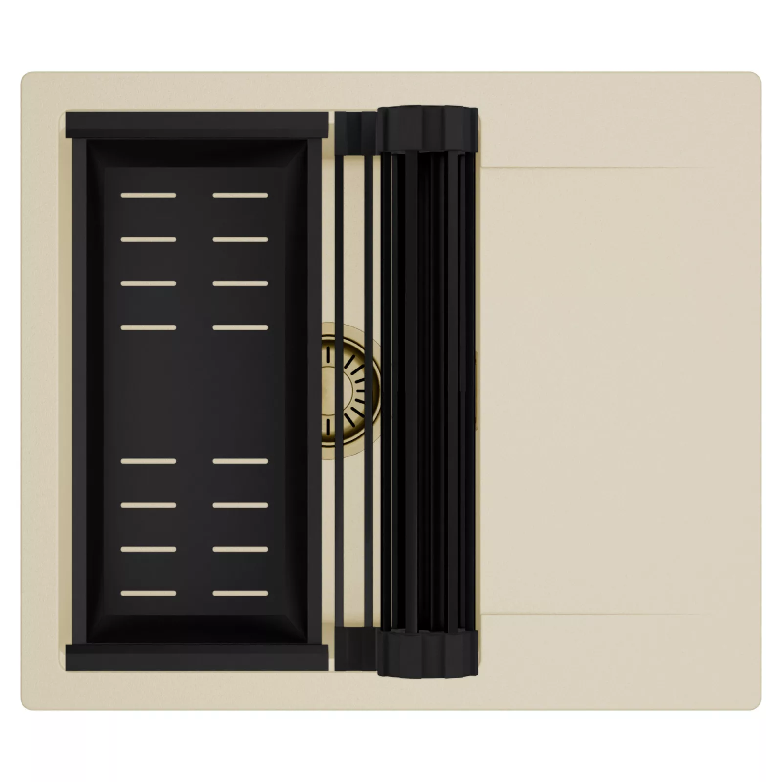 HD Onyx Beige 58 egymedencés mosogatótálca szett, csepegtetőráccsal és kosárral, soft bézs