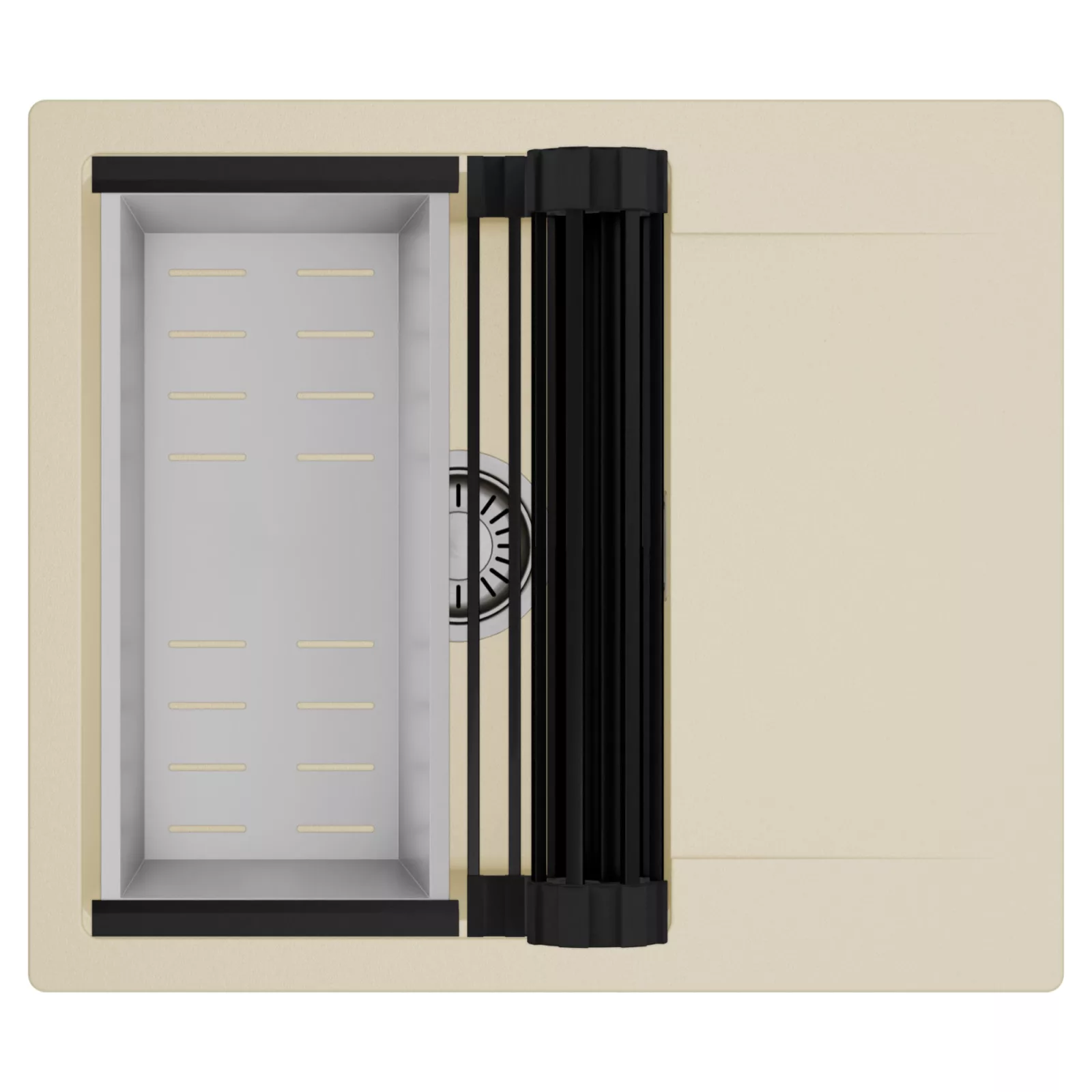 HD Onyx Beige 58 egymedencés mosogatótálca szett, csepegtetőráccsal és kosárral, soft bézs