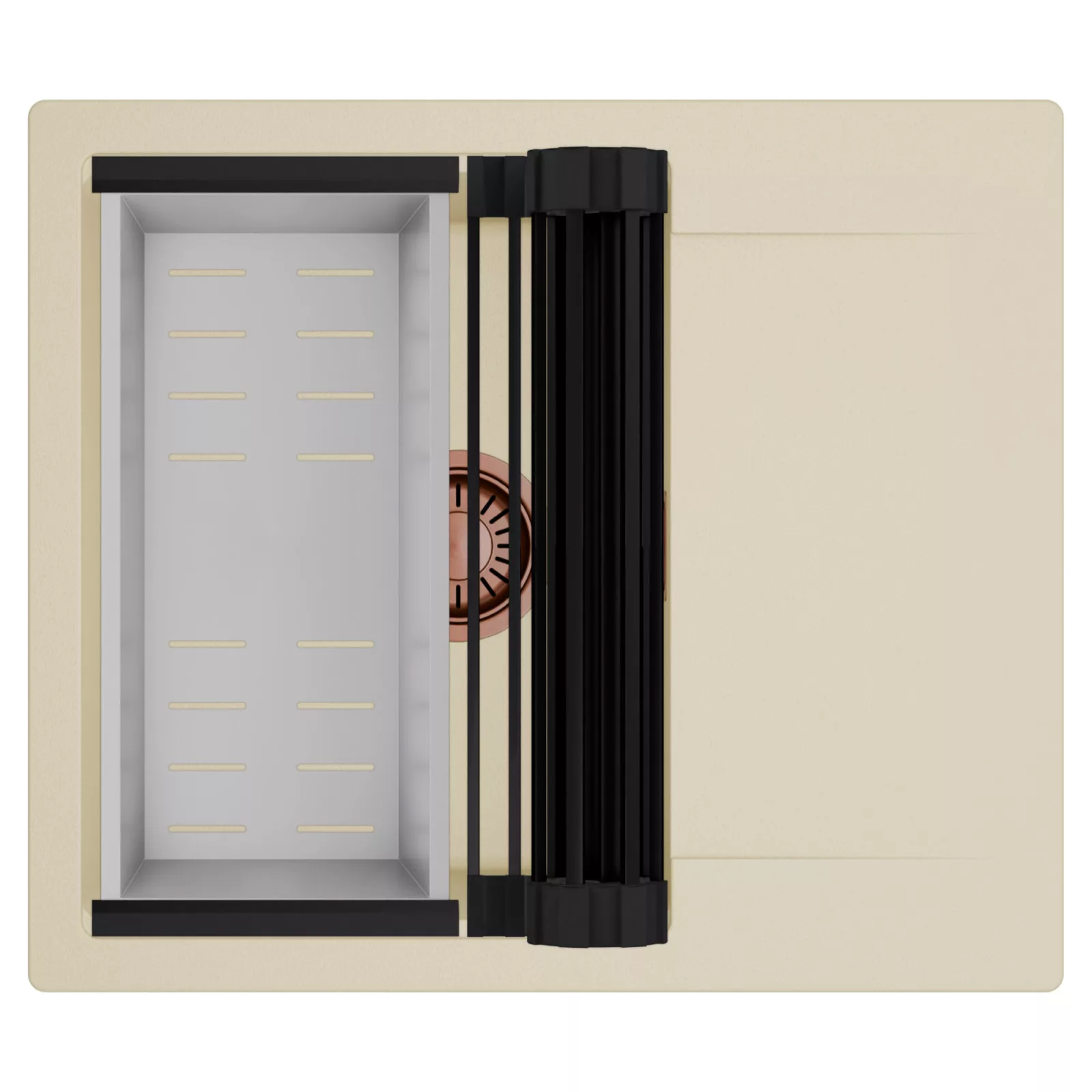 HD Onyx Beige 58 egymedencés mosogatótálca szett, csepegtetőráccsal és kosárral, soft bézs
