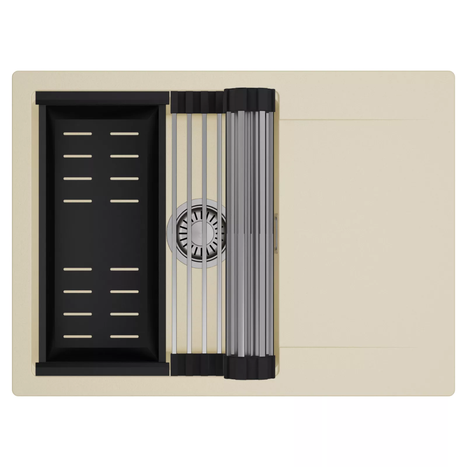 HD Onyx Beige 68-XL egymedencés mosogatótálca szett, csepegtetőráccsal és kosárral, soft bézs