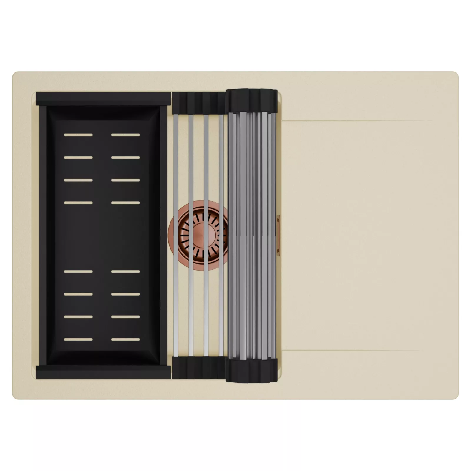 HD Onyx Beige 68-XL egymedencés mosogatótálca szett, csepegtetőráccsal és kosárral, soft bézs