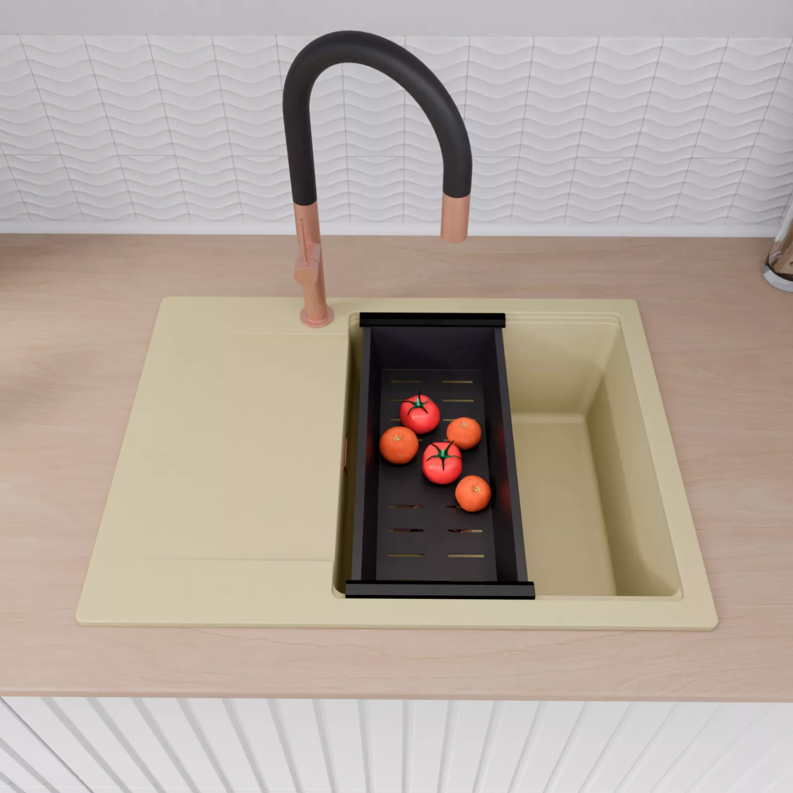A mosogató prémium minőségű gránit kompozitból készült. Letisztult megjelenése mellett rendkívül praktikus, így bármilyen stílusú konyhába harmonikusan illeszkedik. A strapabíró gránit anyag hosszú távon is megbízható használatot garantál.