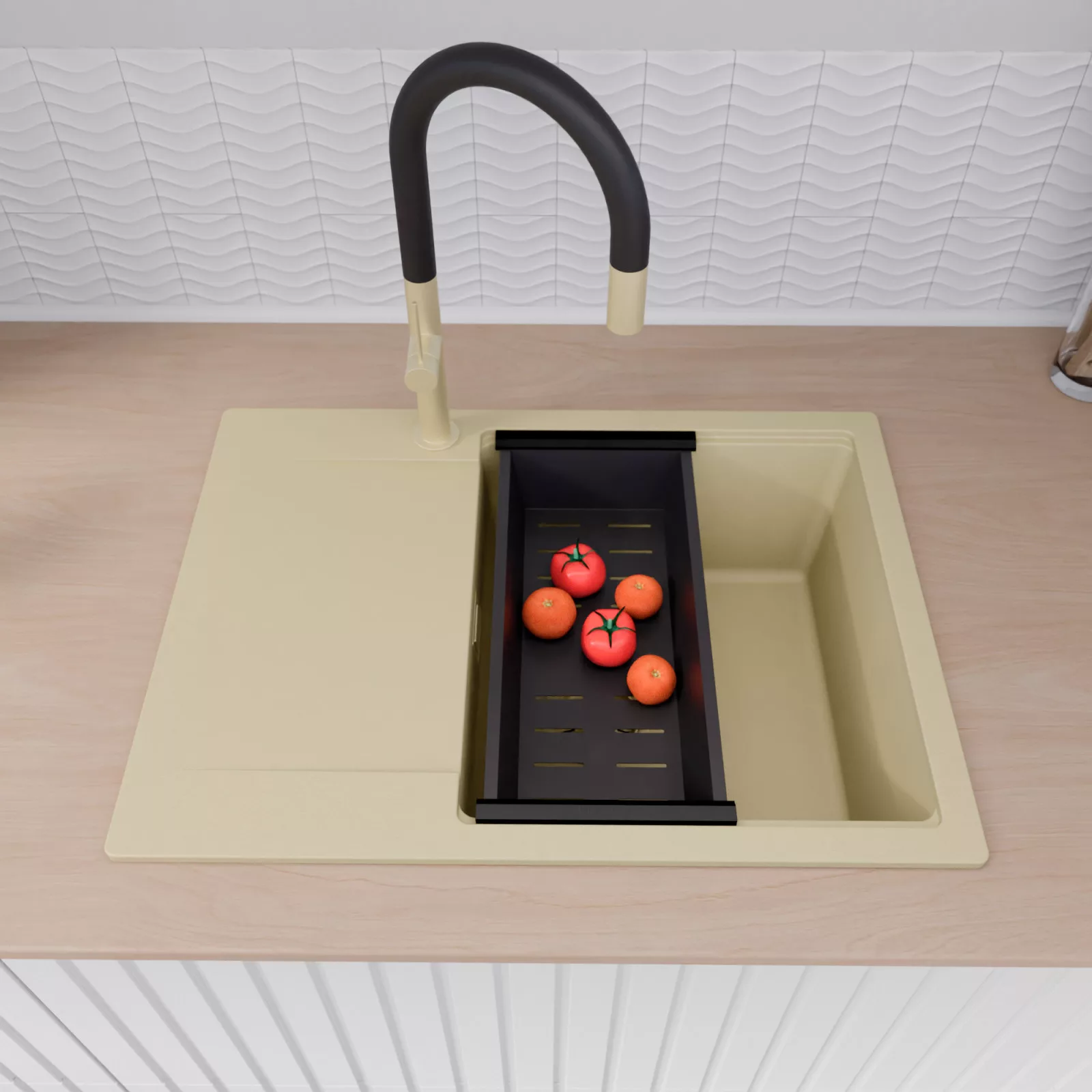 HD Onyx Beige 68-XL egymedencés mosogatótálca szett, csepegtetőkosárral, soft bézs