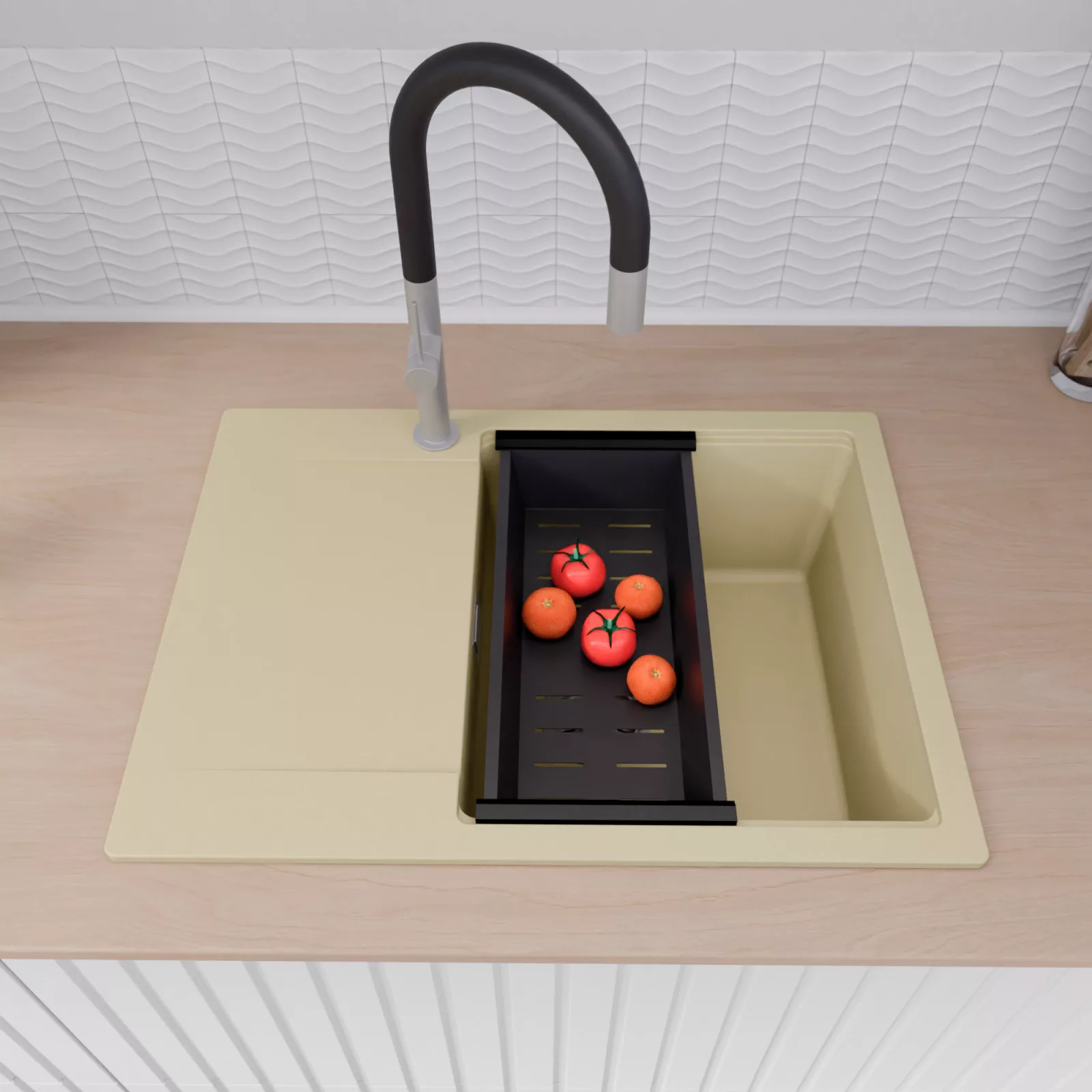 Mosogatónk magas természetes kőőrlemény-tartalmú gránit kompozitból készül, amely rendkívüli stabilitást és tartósságot biztosít. Az anyag ellenáll a magas hőmérsékletnek, a hirtelen hőingadozásoknak, valamint az ütéseknek és karcolásoknak is. Sima, zárt felülete könnyen tisztán tartható, ellenáll a foltosodásnak és az elszíneződéseknek, így hosszú éveken át megőrzi esztétikus megjelenését. Meggyőződésünk, hogy ezzel a gránit mosogatóval a mindennapi konyhai teendők kényelmesebbé és élvezetesebbé válnak.