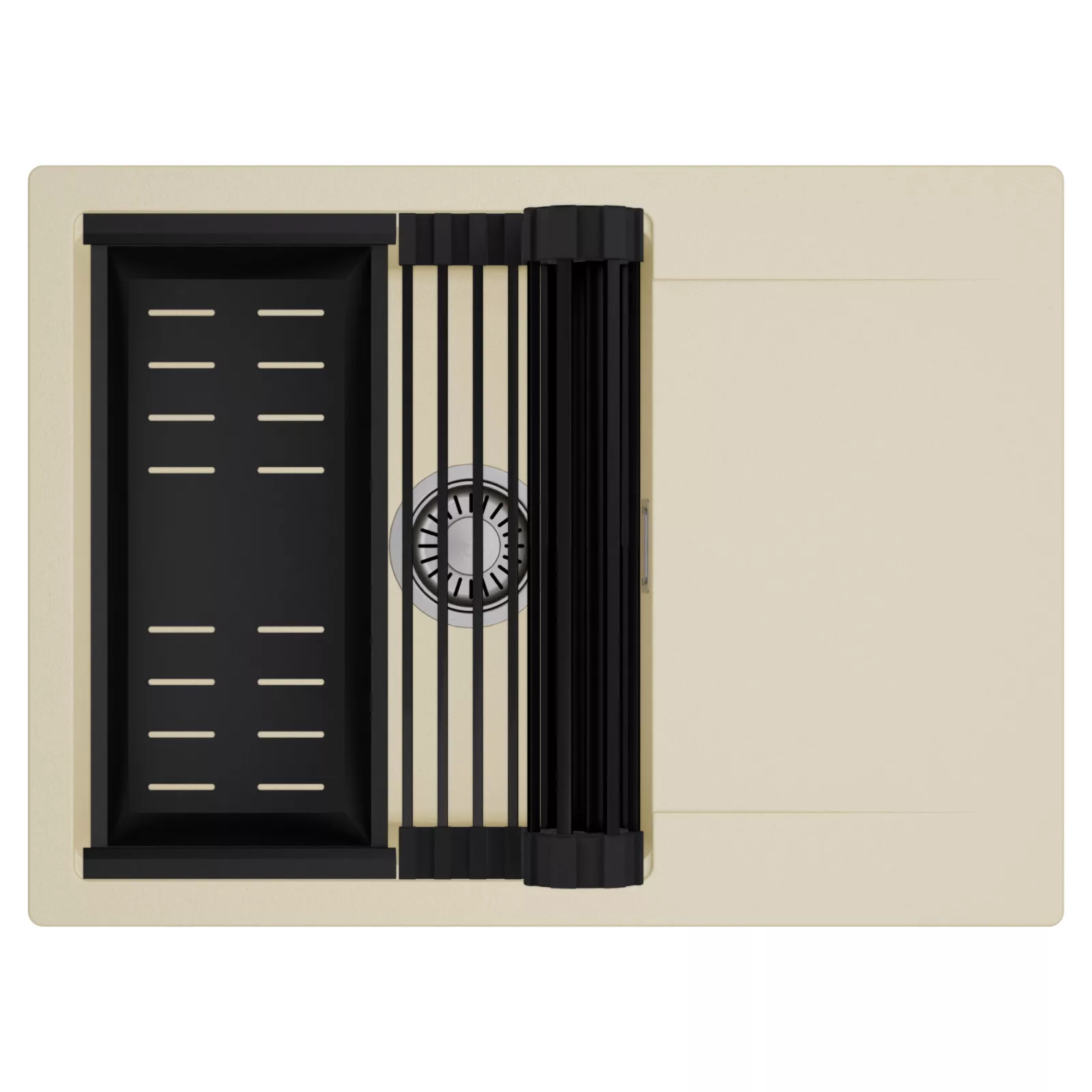 HD Onyx Beige 68-XL egymedencés mosogatótálca szett, csepegtetőráccsal és kosárral, soft bézs