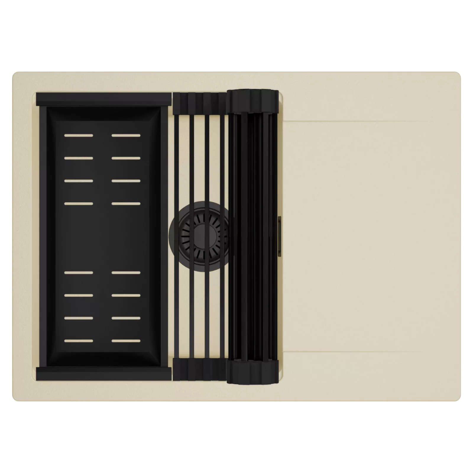HD Onyx Beige 68-XL egymedencés mosogatótálca szett, csepegtetőráccsal és kosárral, soft bézs