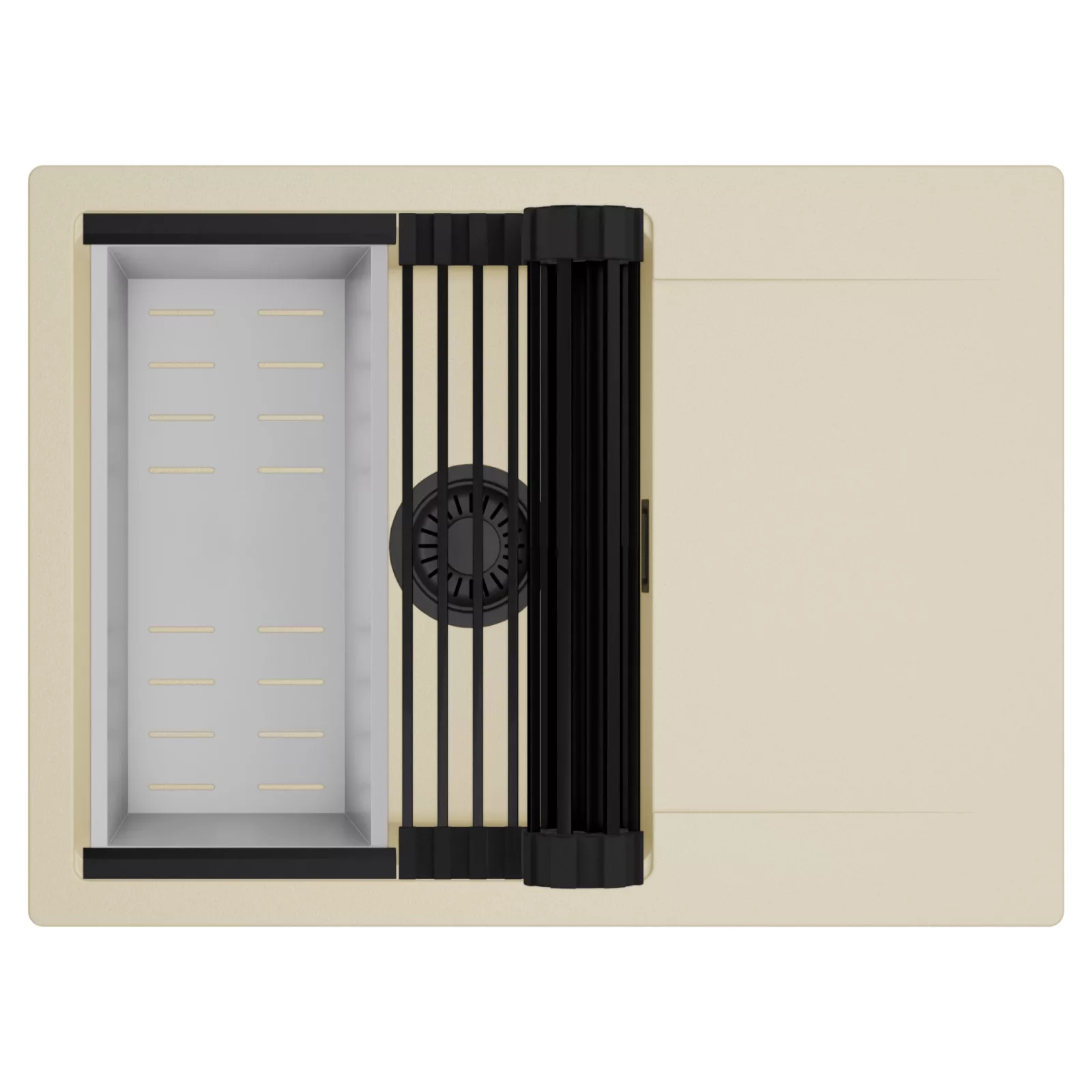 HD Onyx Beige 68-XL egymedencés mosogatótálca szett, csepegtetőráccsal és kosárral, soft bézs